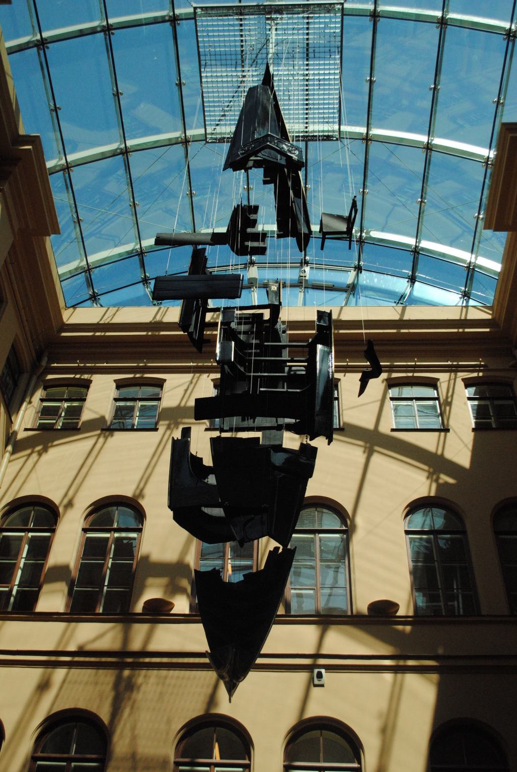 Международно-признанный художник Дмитрий Гутов для изготовления своего арт-объекта «Гондола» использовал настоящую Венецианскую гондолу, хотя послание, заключенное в этом «парящем» произведении искусства, намного обширнее. 11-метровая «Гондола» — это застывший «взрыв» Венецианской гондолы: и пространственно, и линеарно понятное, читаемое послание. Это созданная из хаоса взрыва вселенная художника – упорядоченный мир культуры. В нем нет ничего лишнего, его форма ясна.