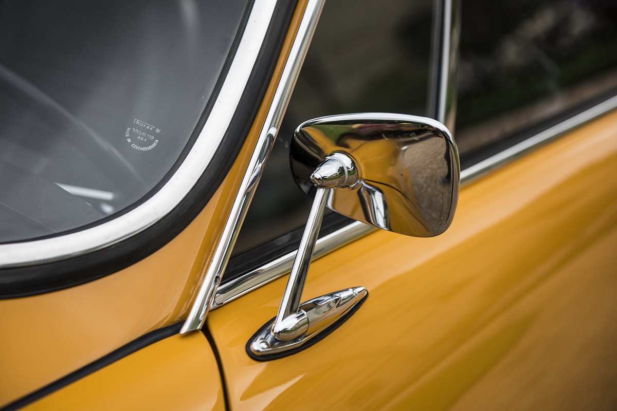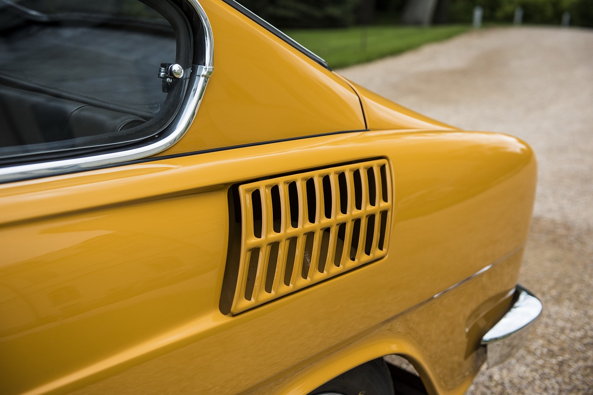 110 R отличался компактными габаритами: при длине 4 155 мм, ширине 1 620 мм и высоте 1 340 мм колесная база составляла 2 400 мм. Оснащенный масляным радиатором и двухкамерным карбюратором четырехцилиндровый рядный двигатель при рабочем объеме 1 107 см3 и степени сжатия 9,5:1 развивал мощность 52 л.с. (38 кВт), а масса автомобиля составляла всего 880 кг – купе получилось весьма динамичным для своего времени. Блок цилиндров, а также корпус четырехступенчатой коробки передач располагались за задней осью и были изготовлены из литого алюминия по запатентованной ŠKODA технологии. С радиальными шинами размерности 165 SR 14 купе 110 R развивало 145 км/ч, а разгон с места до 100 км/ч занимал 19 сек. Тормозная система с двумя контурами, дисковыми механизмами на передних колесах и барабанными на задних обеспечивала надежное и легко контролируемое замедление. Сами тормоза изготавливались в ŠKODA по лицензии английской компании Dunlop. Поскольку развесовка автомобиля составляла 43:57 в пользу задних колес, купе имело отличное сцепление ведущих колес с дорогой. Средний расход топлива равнялся 8,5 л на 100 км, а объем топливного бака, который, кстати, был спереди – 32 л. Под передним капотом у 110 R располагался багажник объемом 250 л; кроме того, позади сидений было еще одно место для багажа объемом 120 л с быстрым доступом из салона.