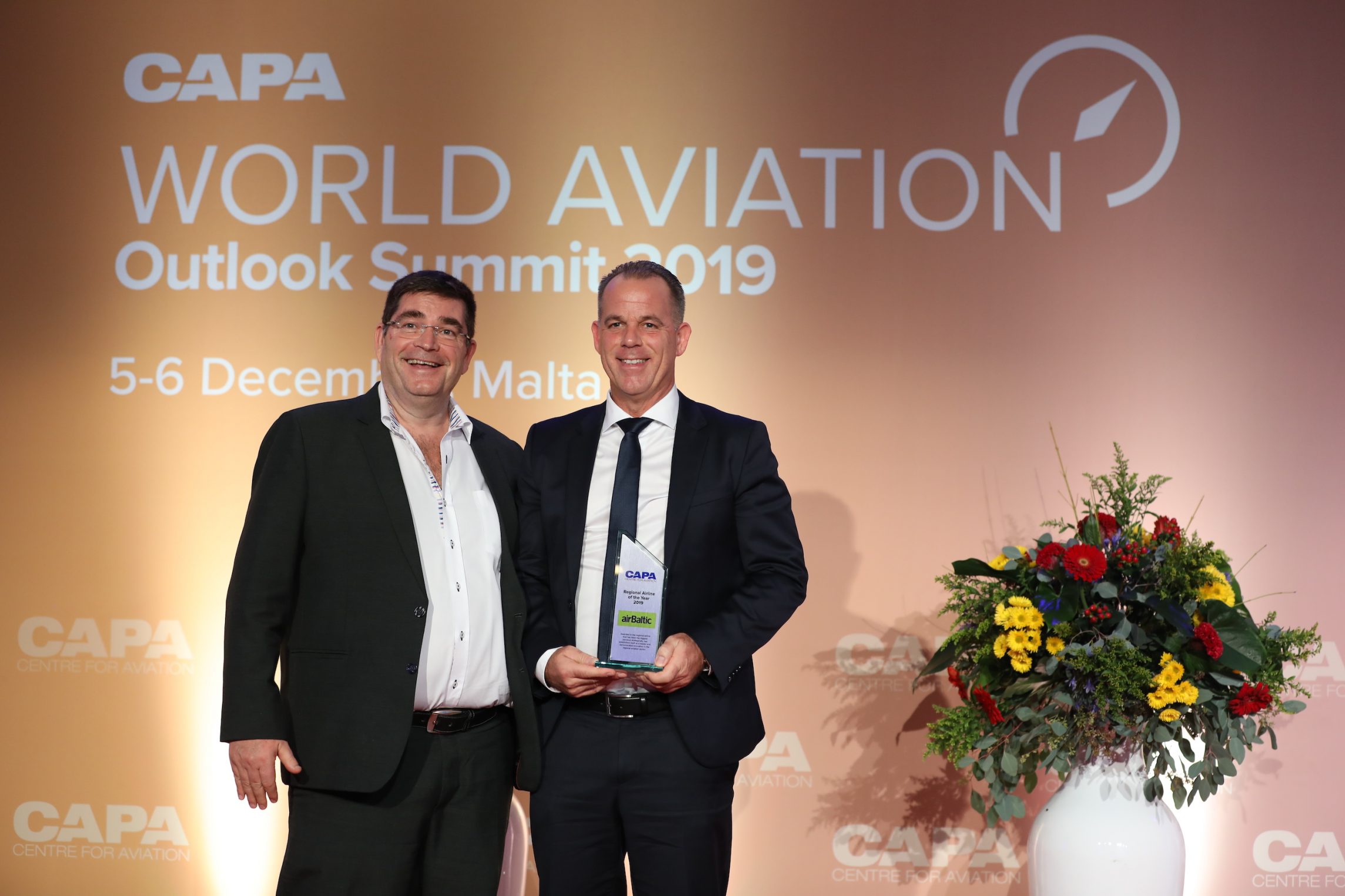 Латвийская авиакомпания airBaltic во время специальной церемонии, прошедшей на Мальте 5 декабря этого года, получила награду CAPA как лучшая региональная авиакомпания года. Уже второй раз airBaltic признается лидером регионального авиационного сектора, получая Награду лидерства в авиации CAPA, которая начиная с 2003 года вручается регулярно в присутствии профессионалов со всего мира.