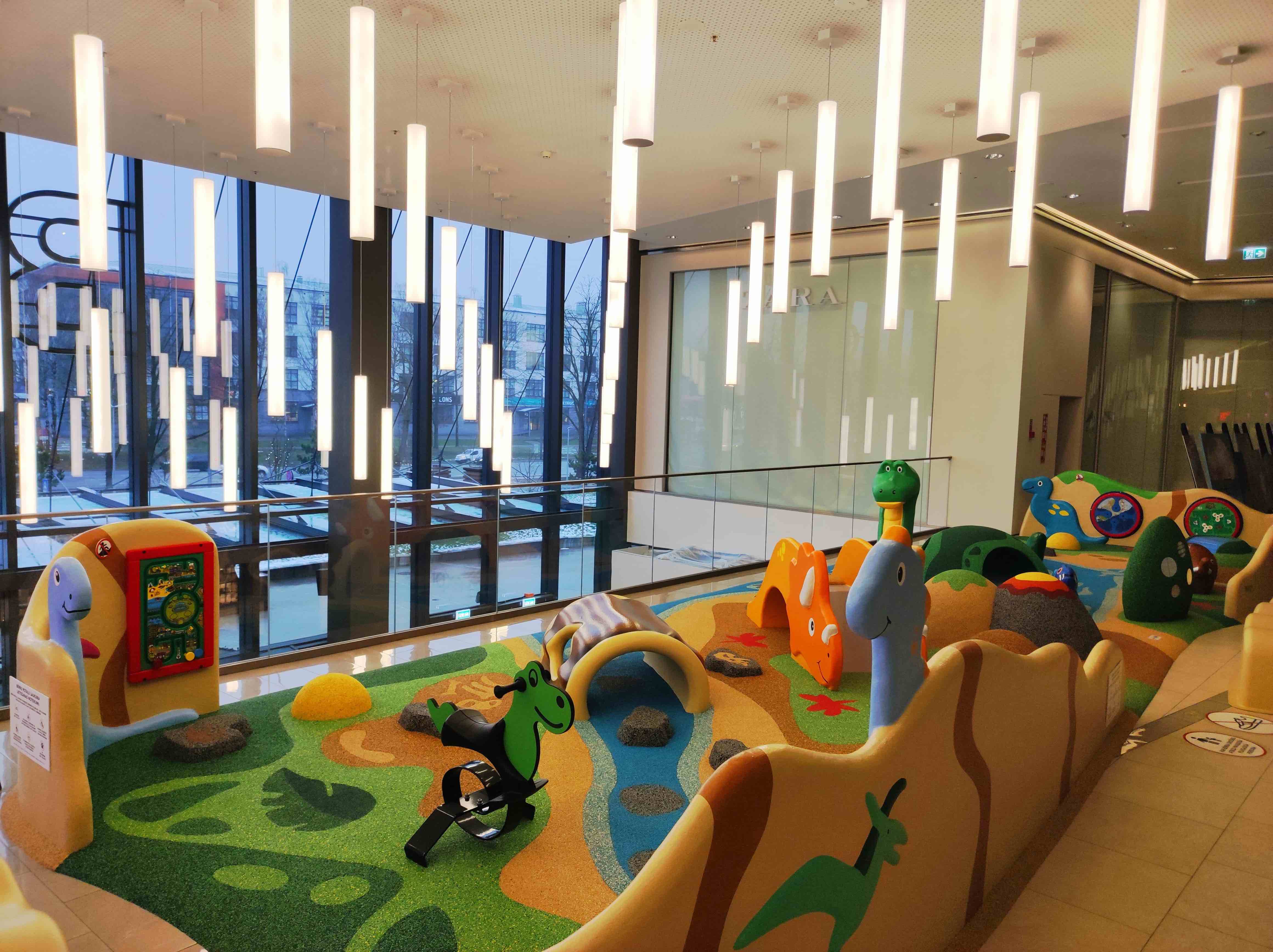 В конце декабря в торгово-развлекательном центре AKROPOLE Alfa открылась новая детская игровая площадка площадью 50 м2, которая приглашает маленьких посетителей торгового центра поиграть и познакомиться с давно исчезнувшими животными – динозаврами и мамонтами. Новая игровая площадка предназначена для детей в возрасте от одного года до восьми лет. При обустройстве детской площадки использовалась высококачественная сертифицированная продукция шведского производителя Rodeco. Детская площадка проверена сертифицированными специалистами, зарегистрирована в ЦЗПП и соответствует требованиям безопасности.