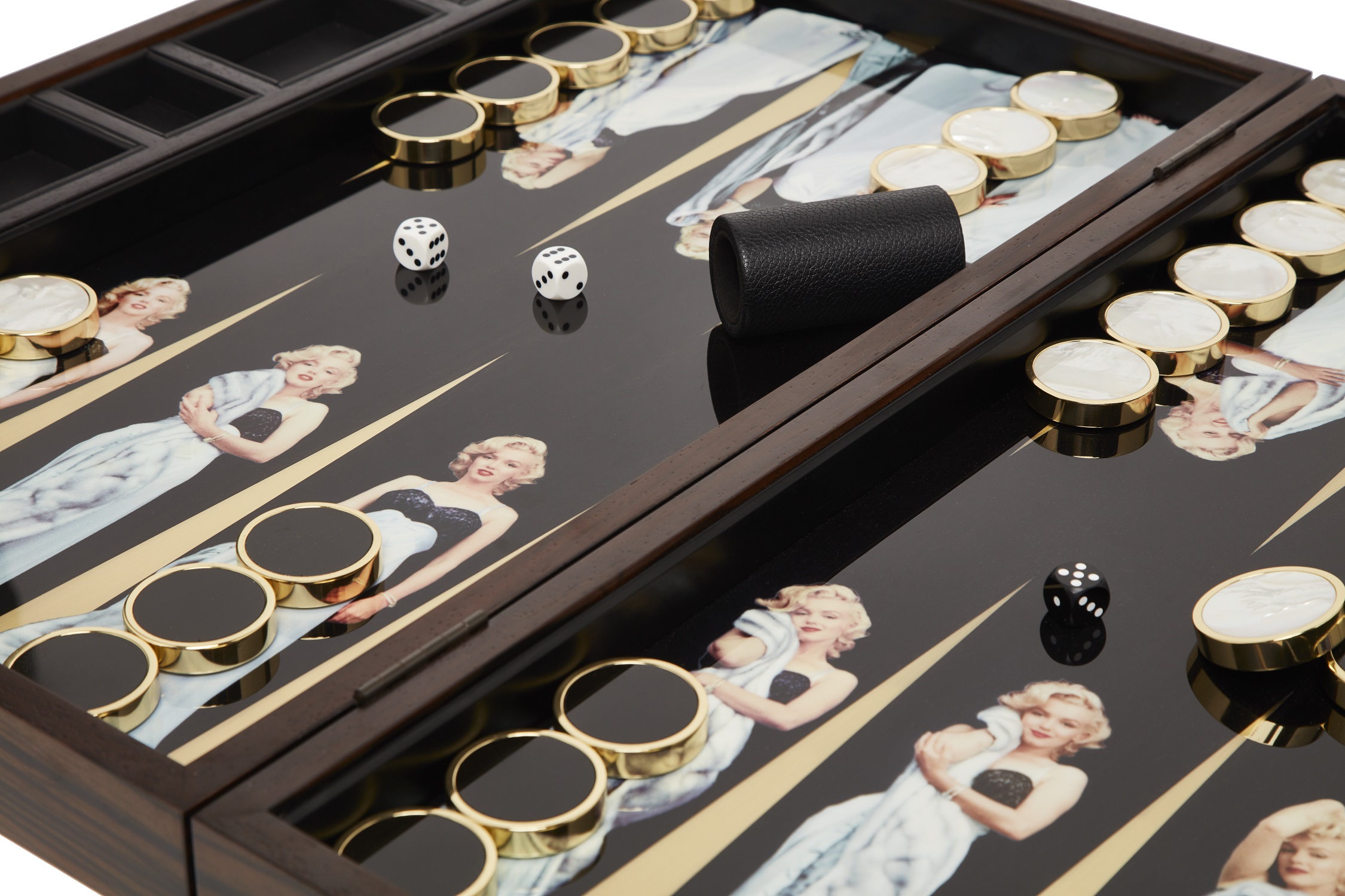 Портреты, представленные на игральной доске, были сделаны в сентябре 1953 года. Легендарная актриса изображена в неглиже, лишь в накинутой шубке, и со сверкающим бриллиантовым браслетом на запястье.