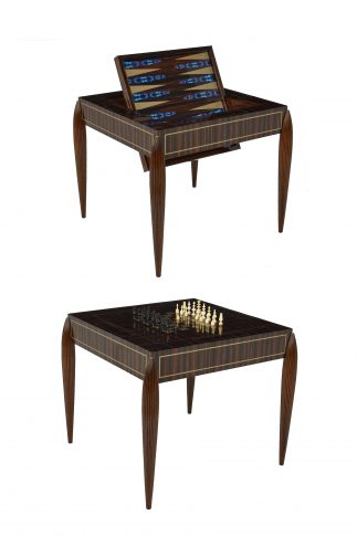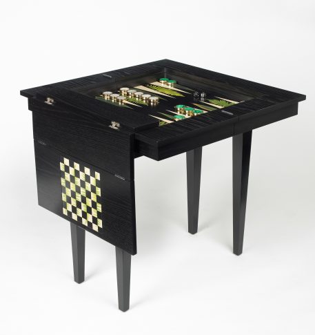 Под стать необычной доске предлагаются столь же необычные варианты столов: Palm Ebony Table (перевернув крышку столика, можно играть в шахматы) или Palm Oak Table (перевернув крышку столика, можно играть в карты).