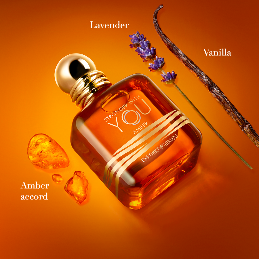 Аромат Stronger With You Amber выстроен вокруг идеи сияния и тепла. Он открывается чистой свежестью лаванды, собранной в Провансе. Этот прозрачный и благородный аккорд словно задаёт тон всей композиции. В сердце звучит янтарь – насыщенный и согретый пряностями, оживлённый искристой нотой мандарина. Постепенно композиция переходит в финал, где мягкая бурбонская ваниль переплетается с деликатными бальзамическими полутонами. Звучание оказывается и сильным, и утончённым, оставляя впечатление уверенности и внутреннего тепла.