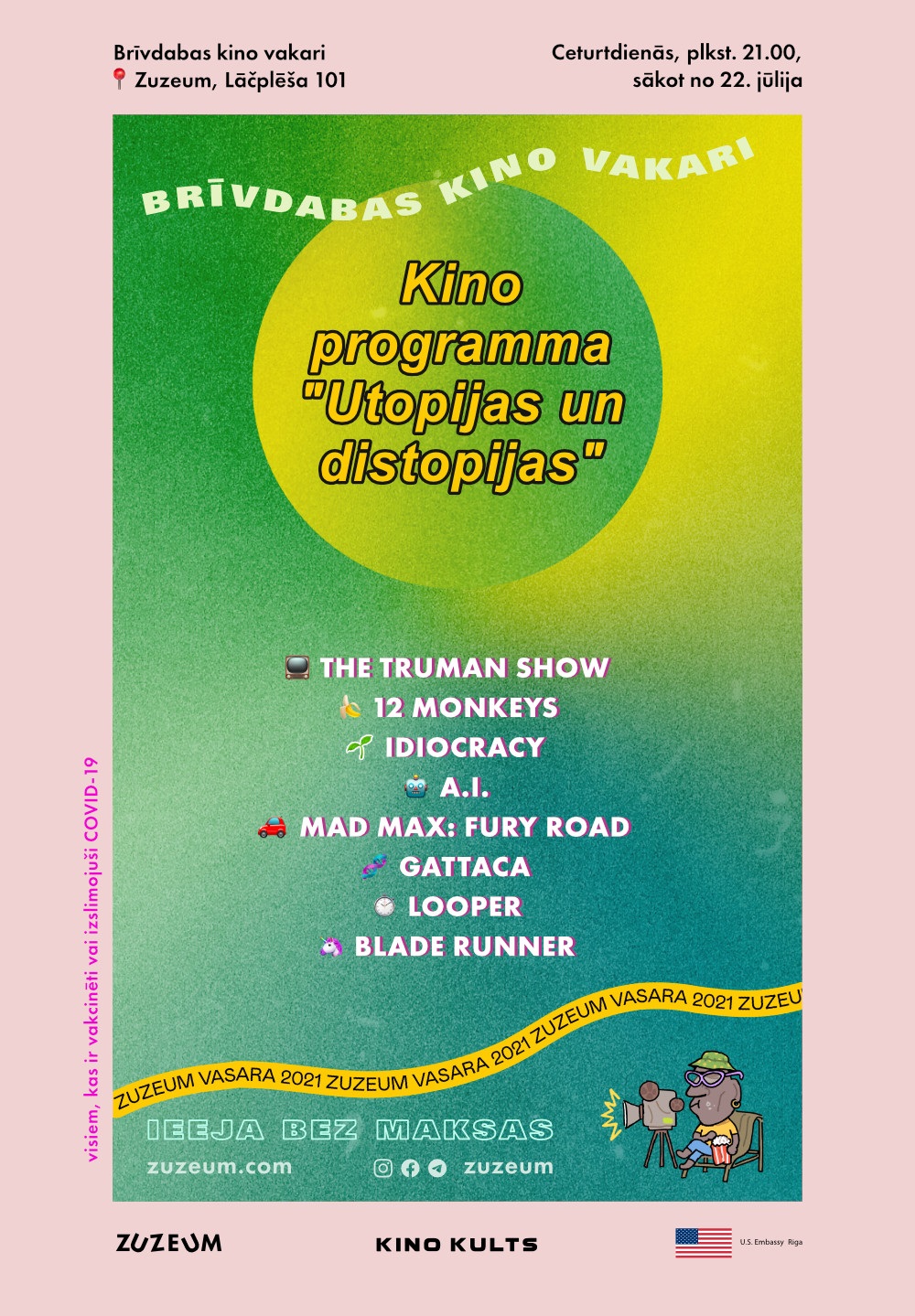 Арт-центр Zuzeum, кинопроект Kino Kults и Посольство США в Латвии приглашают зрителей посетить киноцикл “Белые пятна или Пробелы”(“Baltie plankumi”) под открытым небом. Киноцикл откроется вечером в четверг, 22 июля, показом кинофильма “Шоу Трумана” (“The Truman Show”). Вход бесплатный.
