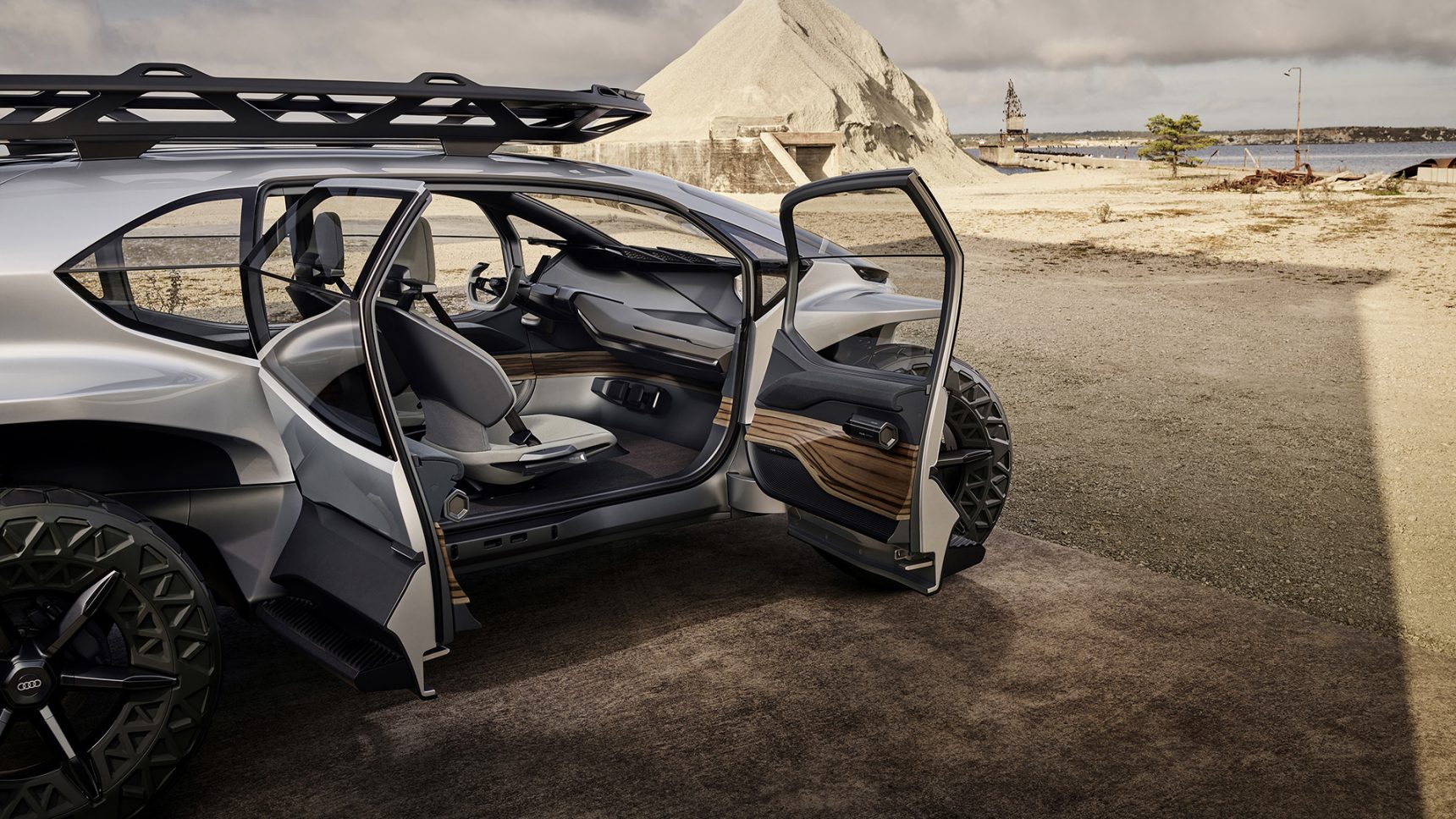 В салоне, который сформирован огромными стеклами и большим количеством многоугольных форм, достаточно места для четырех пассажиров. Одной из характерных особенностей, которая роднит этот концептуальный автомобиль с моделями Aicon и AI:ME, является выступающая кромка посередине боковых стекол. Она расходится в стороны передней и задней частей, образуя выразительную плечевую линию и объединяя весь кузов в единое целое. Компоненты электрического привода расположены в зонах осей, а аккумуляторная батарея установлена в полу. Поэтому не было необходимости оставлять большие свесы или предусматривать отдельные крепления для электродвигателей или аккумуляторной батареи. Общей чертой всех четырех концептуальных автомобилей Audi на выставке IAA 2019 является однообъемная конструкция кузова, которая становится золотым стандартом для века электрических автомобилей.