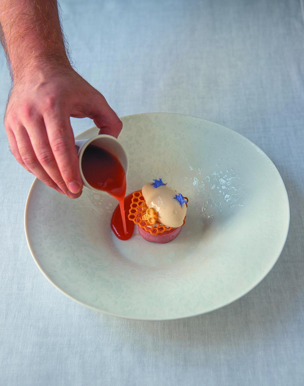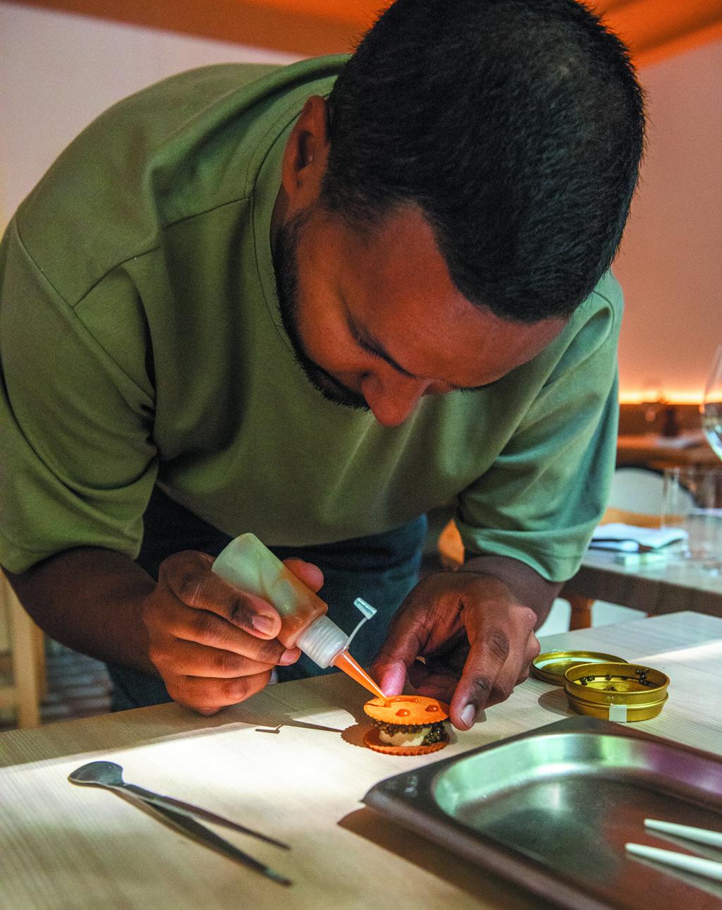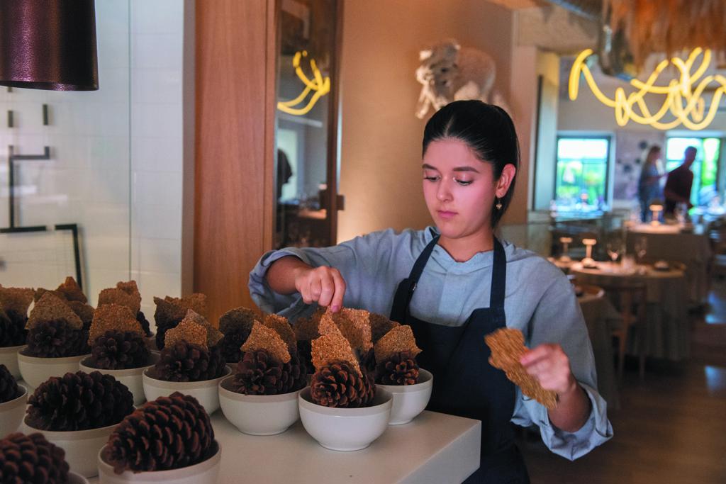 Шеф-повар Андрюс Кубилиус превращает привычные ингредиенты в произведение гастрономического искусства: традиционный чебурек и грибной бульон становятся утончённым блюдом высокой кухни.