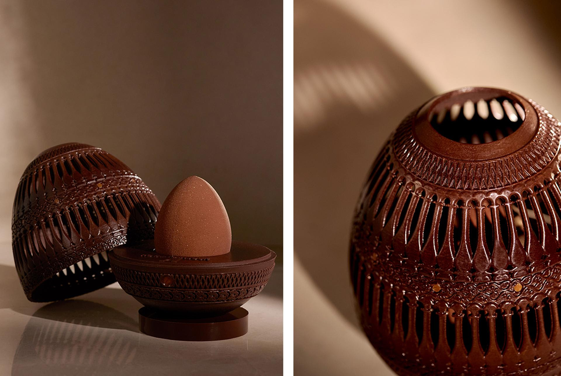 С 31 марта по 27 апреля 2025 года французский ресторан-брассери La Grande Brasserie приглашает попробовать особый пасхальный десерт – шоколадное яйцо с ажурным узором Машрабия. Вдохновившись традиционным марокканским орнаментом, шеф-кондитер Жан Лашеналь создал настоящее произведение искусства. Яйцо с тонкой ажурной оболочкой из молочного или темного шоколада скрывает внутри карамельные пралине с жареным арахисом, фейетин с нотками амлу и соблазнительную мягкую карамель.