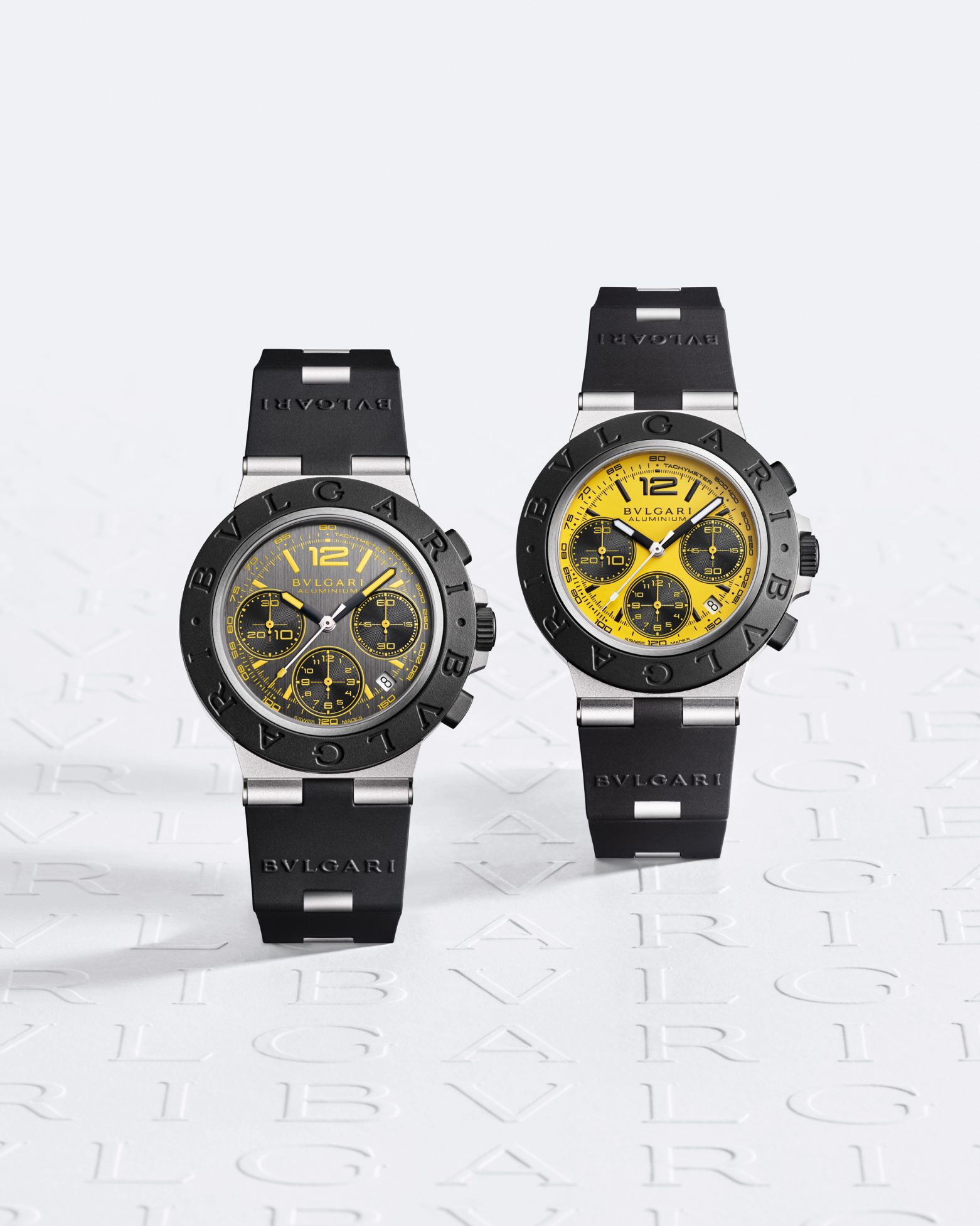 Серия BULGARI Aluminium x Gran Turismo Special Edition представлена в двух лимитированных версиях: с желтым циферблатом и черными индексами (500 штук); и антрацитовым циферблатом с желтыми индексами (1200 штук). Кроме того, впервые с момента перезапуска коллекции в 2020 году, коллекция BULGARI Aluminium подчеркивает тему скорости — встроенной тахиметрической шкалой. Двигатель — калибр B381 с автоподзаводом и хронографом — задуман, спроектирован и изготовлен на собственной интегрированной Мануфактуре BULGARI, он идеале для захватывающих скоростных гонок.