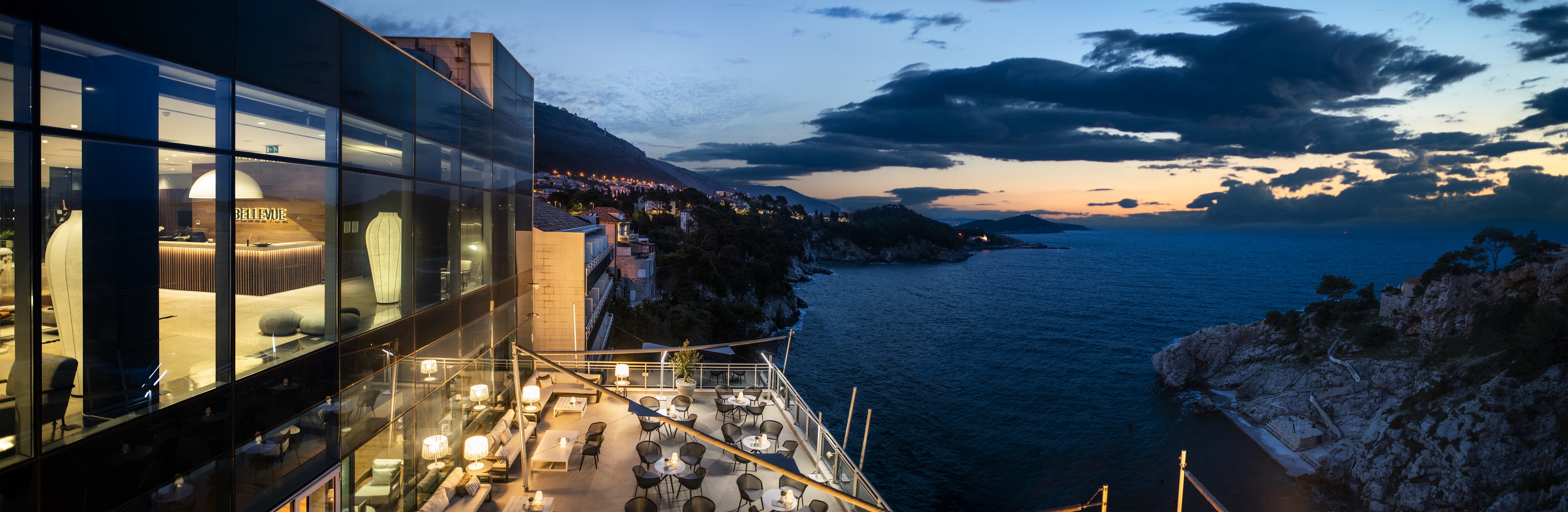 Бутик-отель Bellevue стоит на живописном утесе на берегу залива Мирамар. Из огромных панорамных окон открывается вид на мелко-галечный пляж, бескрайнюю Адриатику и красивейшее побережье, где расположен Старый город Дубровника. Это одна из самых кинематографичных морских панорам в Европе.