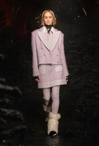 «Я люблю контрасты, поэтому для более объемных зимних вещей мне нужно было небольшое пространство. Не знаю, может, из-за времени, в котором мы живем, но мне хотелось чего-то теплого, живого. Я представила себе, как модели устраивают шоу сами, переходят из комнаты в комнату, пересекают друг друга на лестницах, складывают свои пальто в гардеробной и поднимаются на другой этаж, чтобы переодеться. И я вспомнила шоу, о которых мне давным-давно рассказывал Карл, когда модели сами одевались и делали макияж », — говорит Виржини Виар, описывая атмосферу CHANEL Fall-Winter 2021/22 Ready-to-Wear collection.