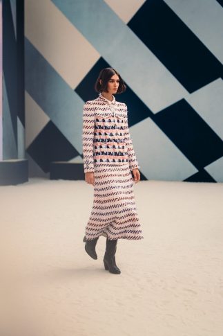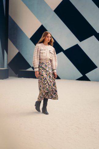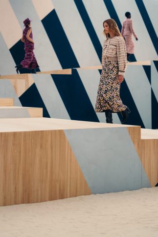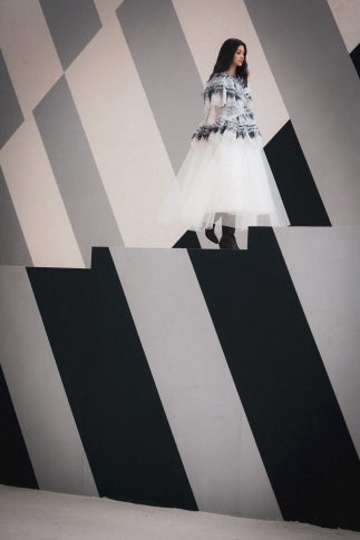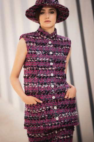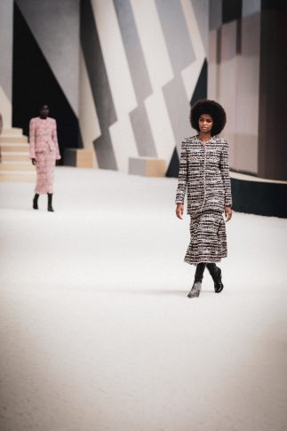 Коллекция CHANEL Haute Couture Осень-Зима 2022/23, созданная Виржини Виар, воплощается в графичных образах, выполненных из роскошного твида и дополненных изысканными украшениями. Конструктивистское вдохновение откликается в геометрических мотивах благодаря оптическим иллюзиям, наполненным легкостью и современностью.