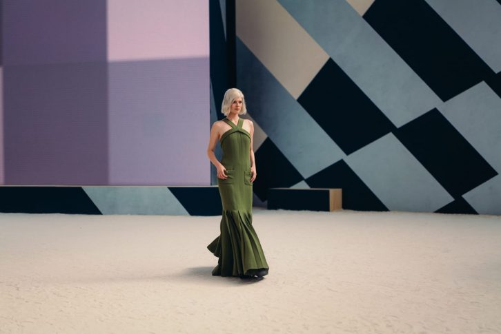 По приглашению Виржини Виар показ Haute Couture Осень-Зима 2022/23 открыл Фаррелл Уильямс, представив эксклюзивный трек, созданный специально для мини-фильмов Ксавье Вейана. Музыкант и амбассадор CHANEL продемонстрировал один из своих музыкальных талантов — игру на барабанах — в твидовом жакете Haute Couture, расшитом серебряными геометрическими мотивами