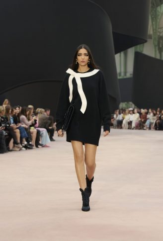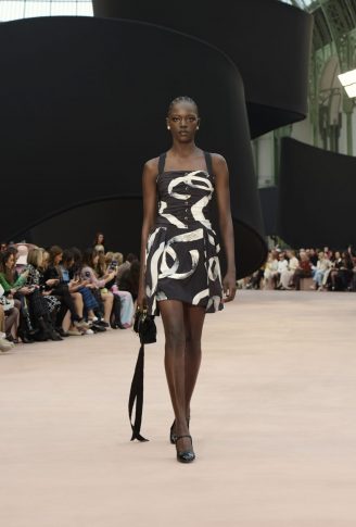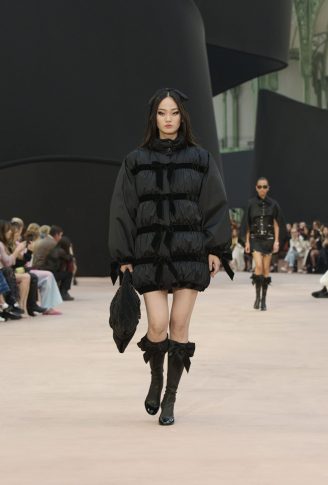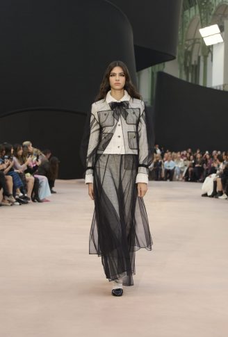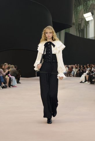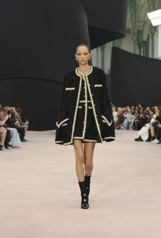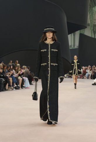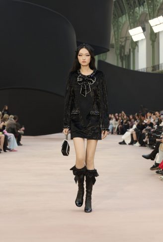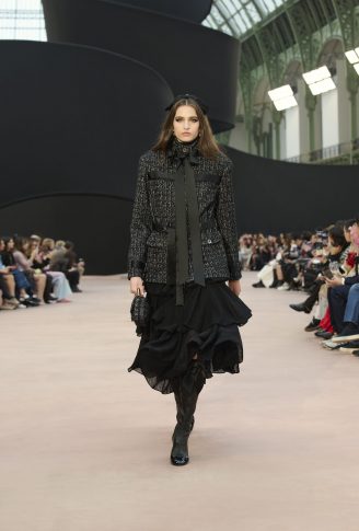 Как в театре иллюзий, новая коллекция CHANEL Ready-to-Wear Осень-Зима 2025/26, созданная Творческой студией Дома, играет с масштабами, длиной и пропорциями. Под стеклянным куполом Гран-Пале декорации, разработанные сценографом Уилло Перроном, словно парят в воздухе, создавая ощущение движения. Огромная черная лента становится монументальным фоном, на котором коллекция пересматривает традиционные коды и изменяет восприятие силуэта.