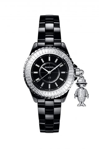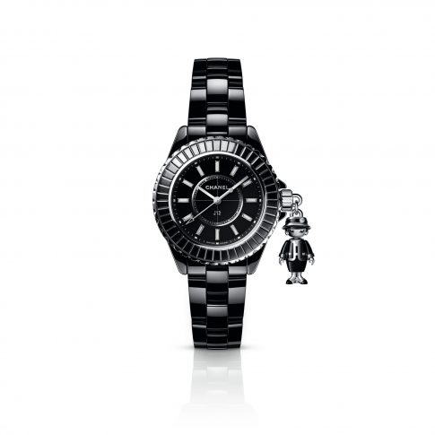 Черная версия с бриллиантами: ограниченный выпуск 20 штук. Корпус из черной высокопрочной керамики и белого золота 18 карат, задняя крышка украшена одним бриллиантом (~ 0,01 карата), на котором выгравированы надписи «MADEMOISELLE J12 ACTE II» и «LIMITED TO 20». Безель из белого золота 18 карат инкрустирован 46 бриллиантами багетной огранки (~ 3,9 карата). Завинчивающаяся заводная головка из белого золота 18 карат и подвеска из белого золота 18 карат с изображением мадемуазель, инкрустированной 224 бриллиантами (~ 0,54 карата). Черный лакированный циферблат украшен 12 бриллиантами багетной огранки (~ 0,2 карата). Браслет из черной высокопрочной керамики с тройной раскладывающейся застежкой из белого золота 18 карат. Высокоточный кварцевый механизм. Водонепроницаемость: 50 метров. Функции: часы, минуты, секунды. Диаметр: 33 мм. Бриллианты: 58 бриллиантов багетной огранки (~ 4,1 карата) и 225 бриллиантов классической огранки (~ 0,55 карата).
