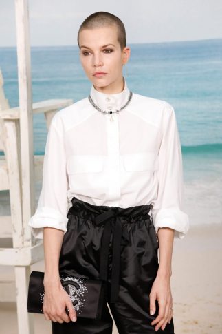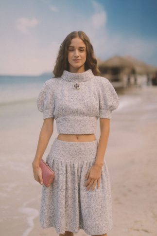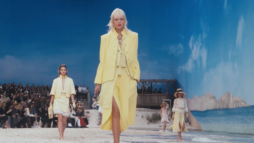 Карл Лагерфельд не мыслит твид без моря. Поэтому для показа весенне-летней коллекции Chanel 2019 года он разбил в центре Парижа,  в отеле Grand Palais настоящий пляж. Подиум превратился в песчаный берег, на который набегали волны, за всем действом наблюдали спасатели, а модели шагали босиком.