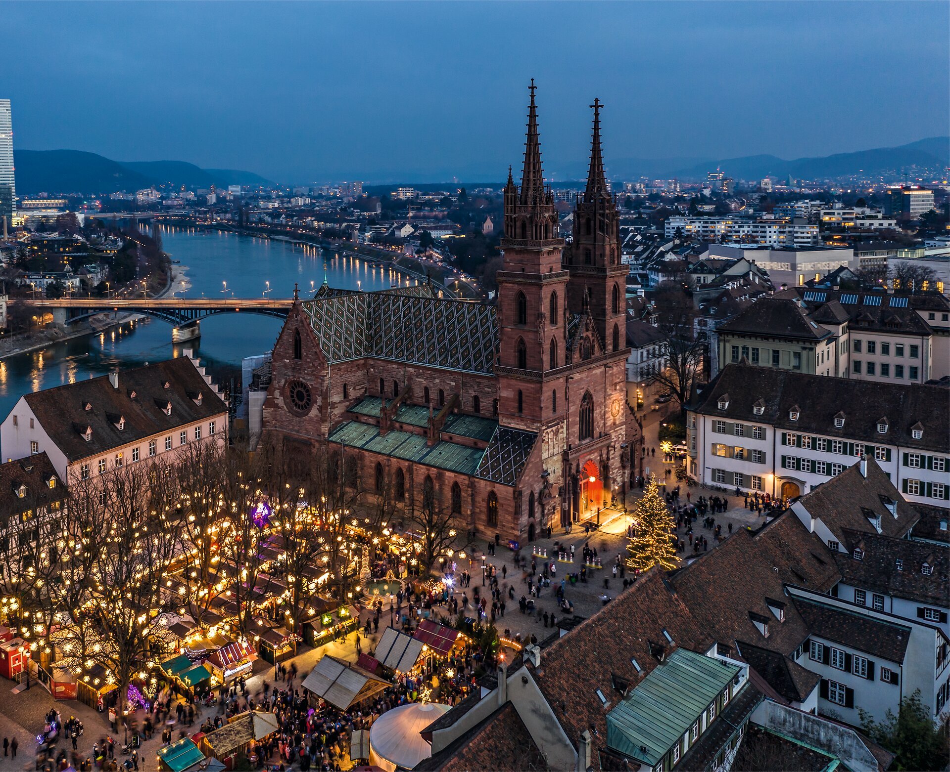 Базель — одно из самых красивых рождественских направлений Швейцарии. Здесь устанавливают более сотни киосков с традиционными сладостями, напитками и изделиями местных мастеров. Особая точка — башня Святого Мартина, откуда открывается панорама на весь праздничный город. На фоне старинной архитектуры и швейцарской аккуратности рождественский сезон в Базеле выглядит особенно празднично.