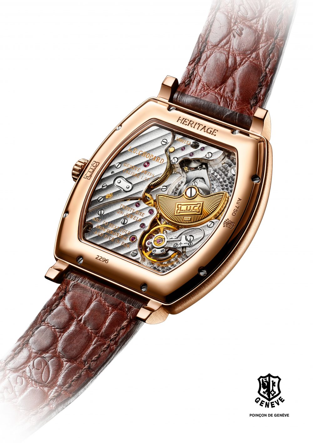 Исполненные в духе этой благородной преемственности, L.U.C Heritage Grand Cru – пример Высокого часового искусства, плод уникального мастерства Мануфактуры Chopard. Модель отмечена престижным знаком «Poinçon de Genève» и задумана как символ высокого качества и уважения лучших традиций Женевского Часового Дома. Вдохновением для дизайна такой необычной формы послужили дубовые бочки из лесов Бертранжа, Жюпий или Тронсэ, бочки, в которых плоды виноградников Гран Крю превращаются в уникальные вина.