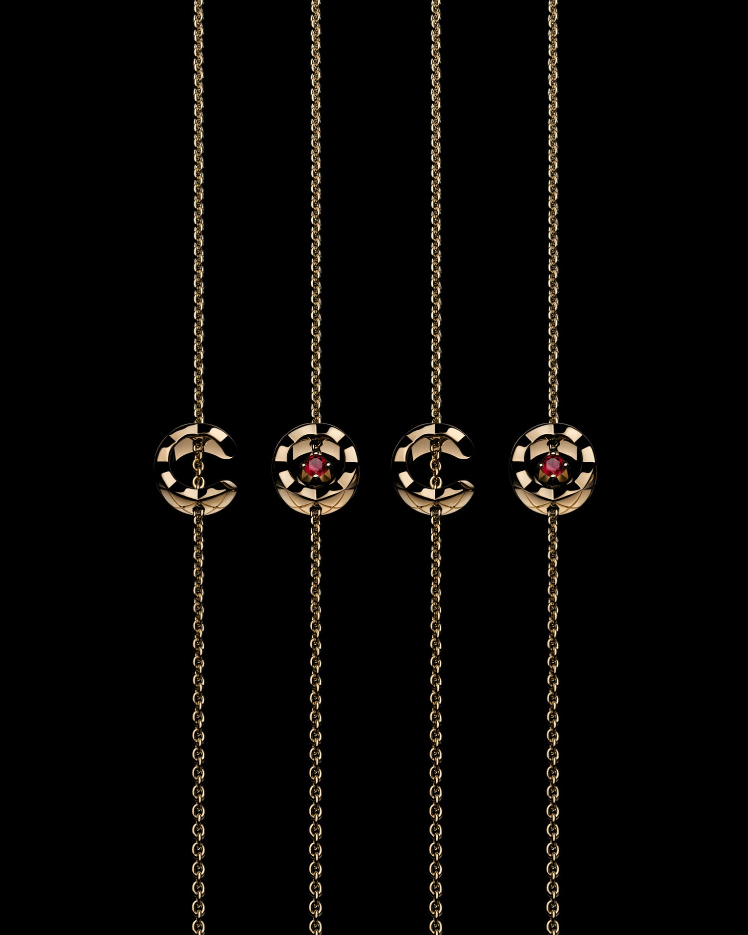 Впервые в истории коллекции стеганое золото COCO CRUSH дополнили насыщенными рубинами. Этот пламенный оттенок становится акцентом: он сверкает в углублении кулона в форме буквы «C» или сияет в центре буквы «O» на браслете. Вместе буквы C и O составляют слово C.O.C.O., превращаясь в элегантный шифр, который можно носить на запястье, за ухом или на декольте. Это визуальное приглашение играть с цветами и символами коллекции, которая стала гимном легкости и изысканности.