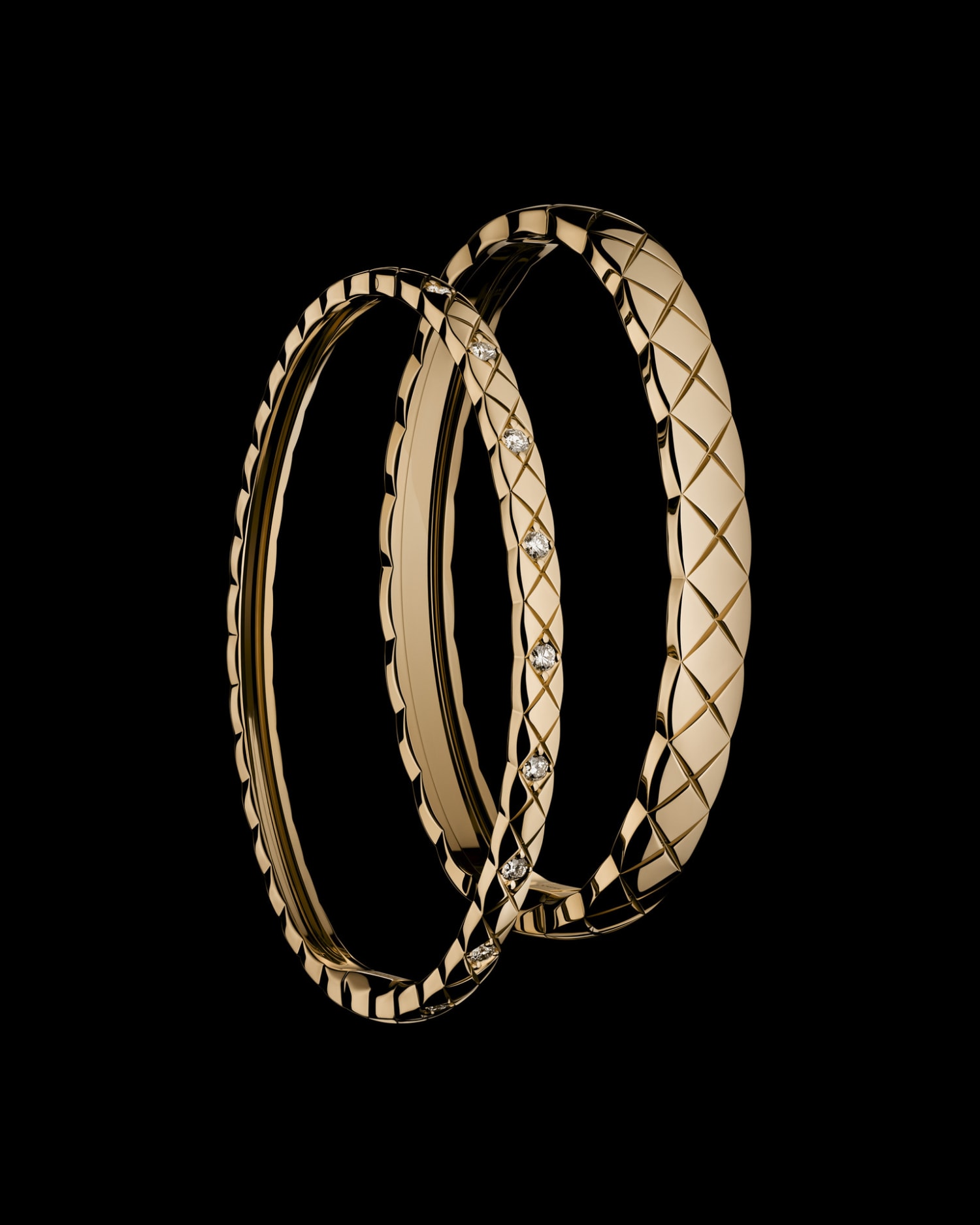 В 2015 году стеганый узор предстал в самой драгоценной и инновационной форме: CHANEL преобразил его в золото и представил коллекцию ювелирных украшений COCO CRUSH. Эта минималистичная коллекция создана для независимых женщин, которые, подобно самой Габриэль, отмечают важные события своей жизни через искусство.
