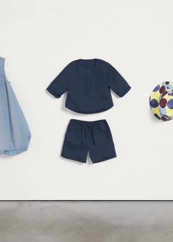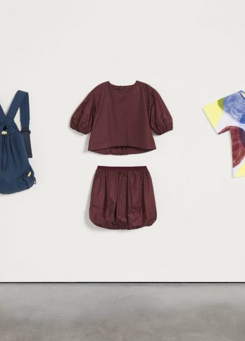 *Коллекция для детей игриво исследует явления и цвета, которые послужили вдохновением для коллекции сезона. Воздушные технические ткани формируют легкие дождевики и куртки-анораки, а в комплекте к ним идут базовые предметы одежды из хлопка, такие, как объемный топ и юбка из поплина или футболка с квадратным подолом. Аксессуары, такие как игриво переосмысленная сумка на пояс, дополнены цветными деталями, а панама переинтерпретирована с использованием особой печати in-house.