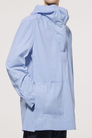Двубортный льняной плащ создает классический силуэт, а деконструированный блейзер переосмыслен и сшит из легкой ткани. Структурированная деталь, проходящая вдоль линии плеча легкой куртки-анорака с капюшоном создает органическую форму.