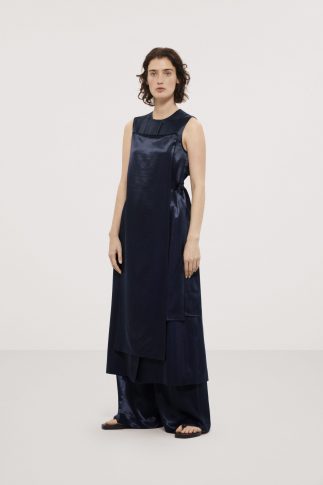В женской коллекции шелковые, воздушно-объемные формы контрастируют с функциональными элементами, такими как застежки на кнопках и регулируемые ремни, которые позволяют играть с пропорциями. Объемное хлопчатобумажное платье из поплина и юбка из ткани с отливом характеризуются ассиметричными формами, классическая рубашка-поло переосмыслена и представлена в легком плетеном варианте, а драпированный трикотажный топ создан для того, чтобы его можно было носить в восьми вариациях. Линия талии завышена, а края и разрезы интерпретируются по-новому и обработаны в округлой форме.