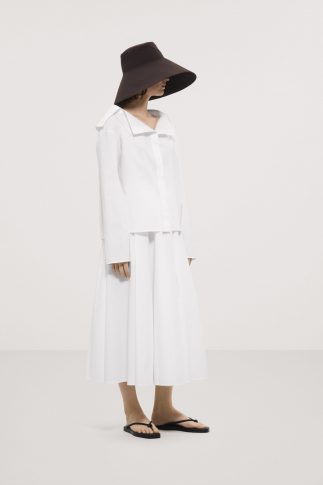 В женских комплектах шляпа предстает в виде широкополой панамы, которая защищает от солнца и создает чистый силуэт. Открытую обувь можно носить как в виде шлепанцев, так и в виде мюли, предлагая универсальность и возможность применить творческий подход к созданию комплектов. Текучие, природные формы представлены в коллекции серебряных украшений. Объемный мужской рюкзак из рипстопа создан по принципу функциональности, в то время как округлые кожаные сандалии с элементом в виде узла завершают дополняют общий силуэт сезона.