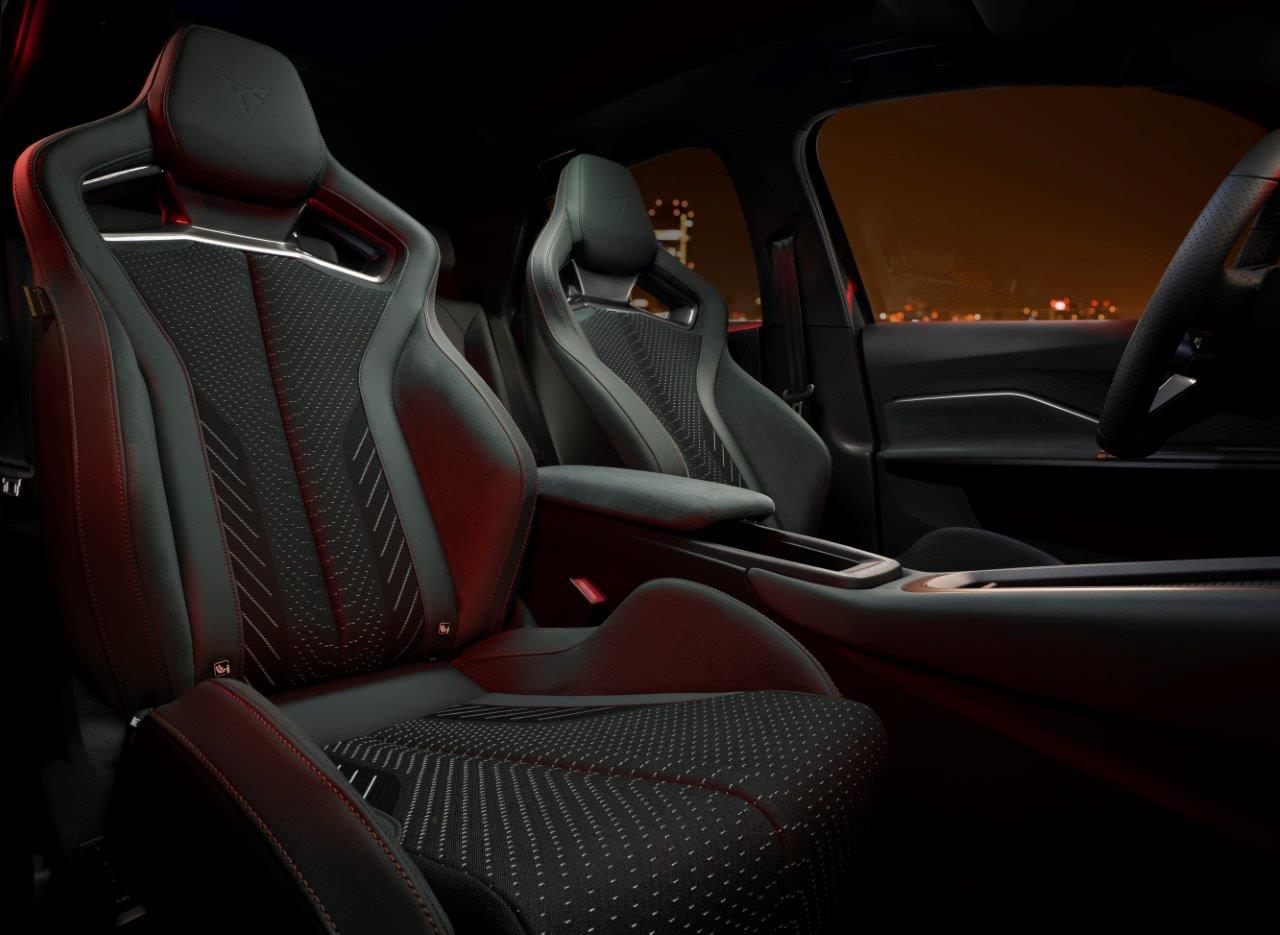 Эмоциональный дизайн CUPRA Born VZ воплощен и в салоне. Стандартные спортивные сиденья CUP созданы в эксклюзивной версии, доступной только для этой версии CUPRA Born, а также CUPRA Formentor VZ5 и CUPRA Leon VZ CUP. Они более низкие и предлагают более эргономичное и комфортное вождение. Спортивные сиденья CUPRA Born VZ изготовлены из переработанного текстиля SEAQUAL® YARN и материала DINAMICA с содержанием 73% переработанного полиэстера.