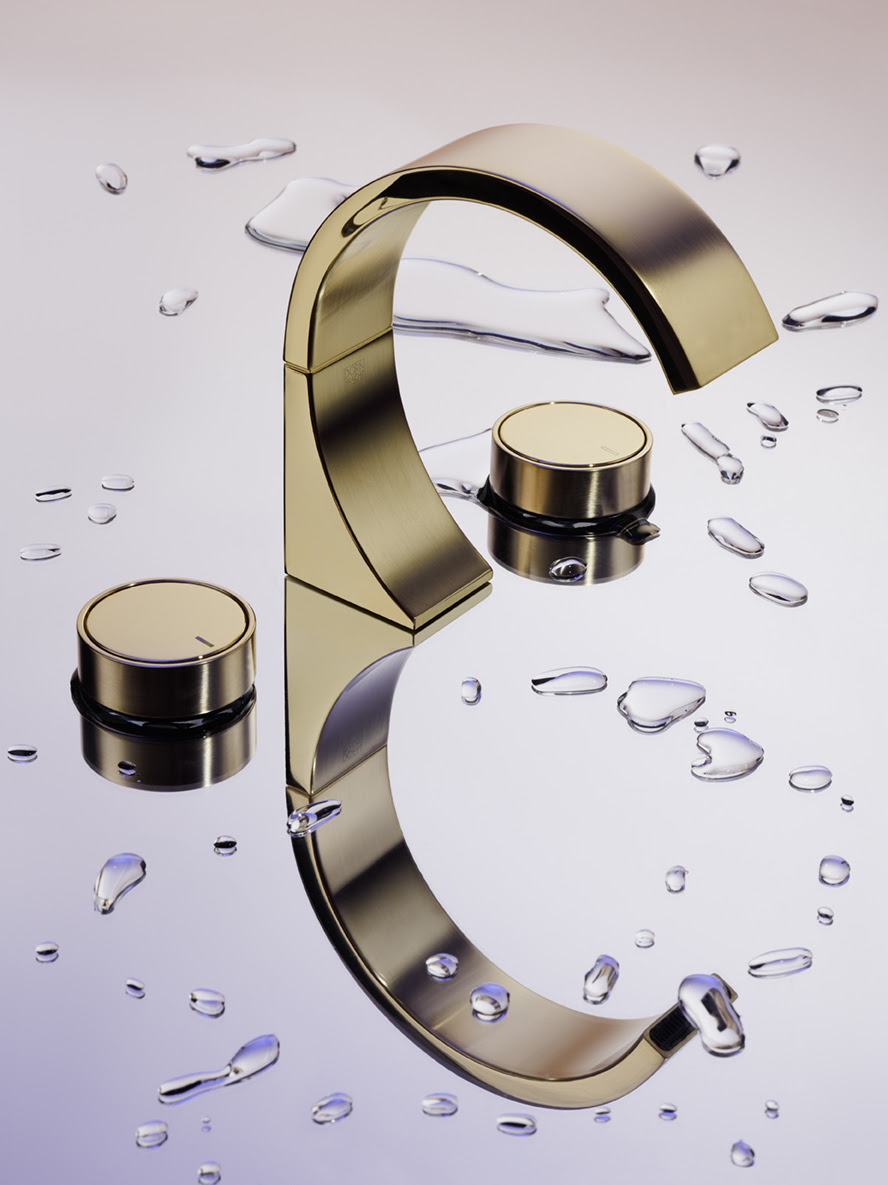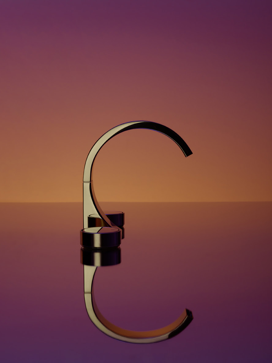 Центральным элементом дизайна смесителя стала новая интерпретация архетипического излива C-образной формы. Он определяет экстравагантный контур и скульптурное качество CYO. Через всю серию лейтмотивом проходит базовая форма круга, ее можно заметить во всем, от элементов ручки до струи воды, которая повторяет форму излива.
