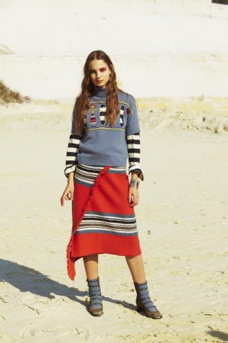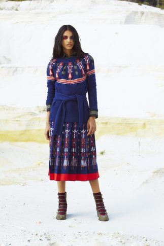 В коллекцию, разработанную итальяно-гаитянским модельером, вошло всего 20 предметов одежды, преимущественно из кашемира и мохера: пальто, длинные кардиганы, юбки плиссе, укороченные брюки. Вдохновение дизайнер черпала в культуре индейцев, в том числе народа навахо. Их представления о духах и мифология легли в основу одного из главных мотивов коллекции.