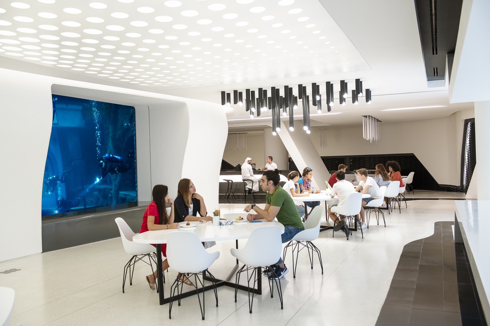 На территории бассейна площадью 1500 кв.м., которая имеет форму гигантской раковины в знак уважения истории добычи жемчуга в ОАЭ, помимо различных залов для встреч, мероприятий и конференций находится магазин для дайвинга, сувенирная лавка и ресторан на 80 мест. Смотровые площадки на нижних этажах здания позволяют посетителям подробно рассмотреть подводное пространство бассейна.