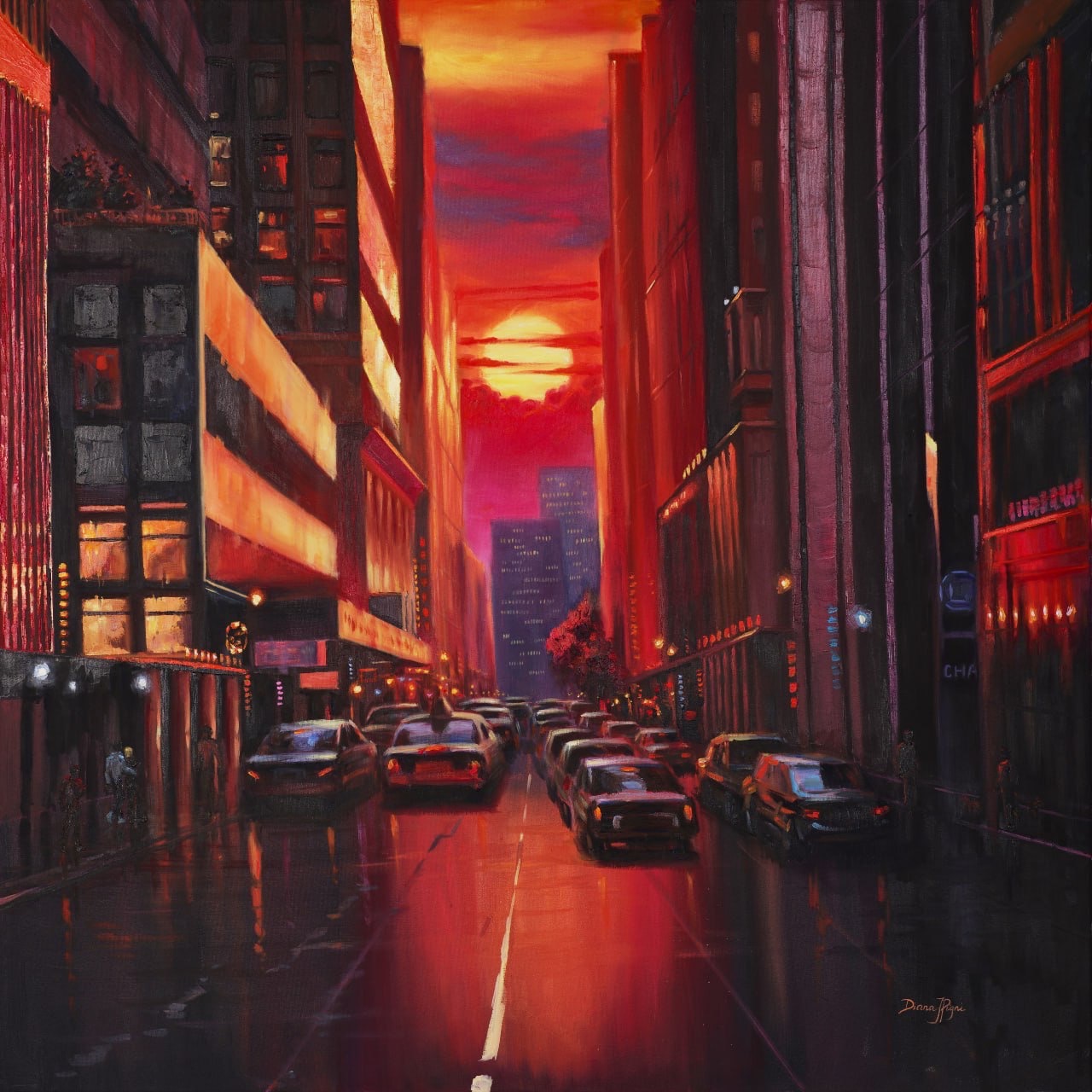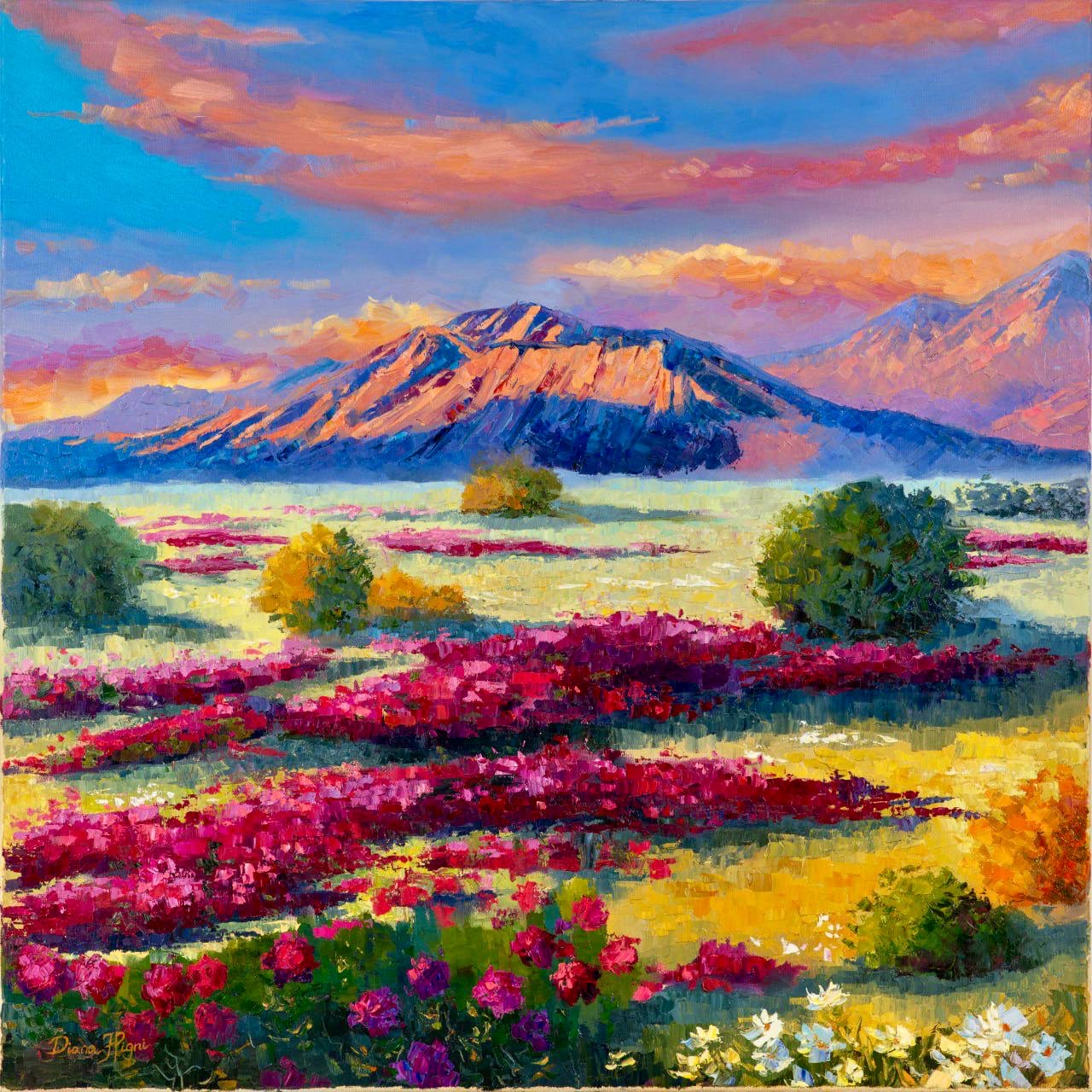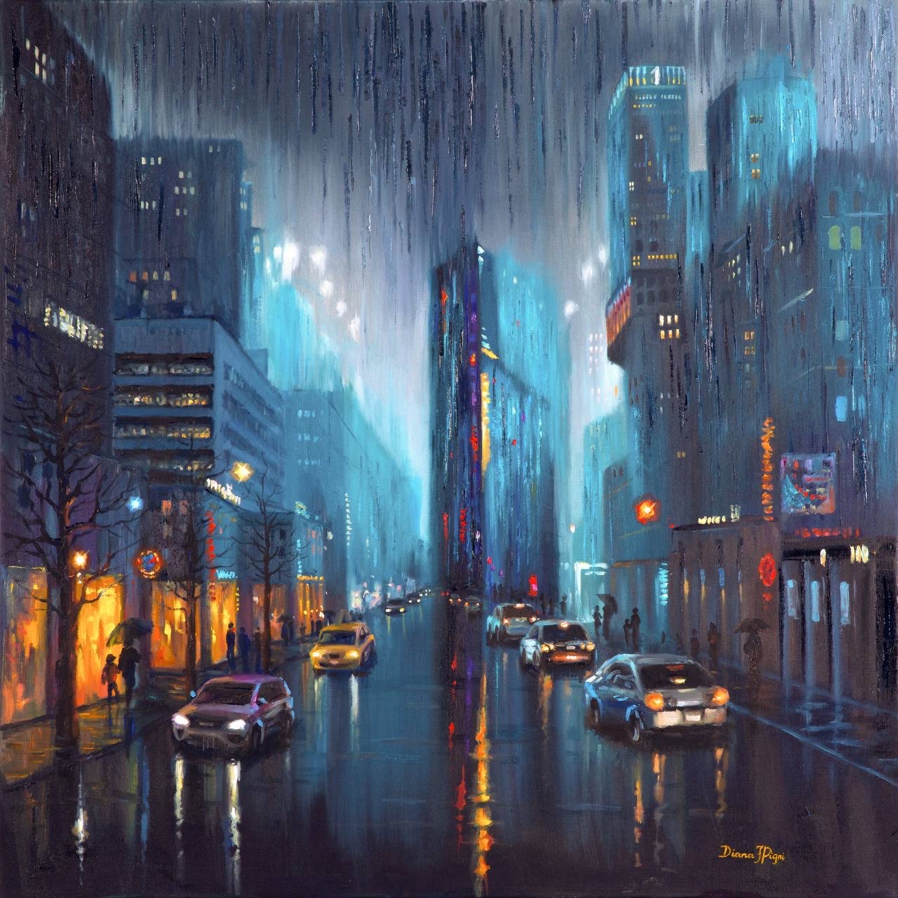 — Да, нужно было подождать, потому что я рисовала эту картину слоями. Каждый слой должен был подсохнуть, чтобы цвета были более насыщенными и «богатыми». Также, когда картина уже закончена, мне нравится добавлять крупные мазки мастихином и это тоже занимает достаточно много времени. В принципе, как написать новую картину. Плюс, ее нужно снова высушить, и на сушку уходит от недели до двух. По технике, лаком картину покрывают через 6-12 месяцев, но я использую тонкий слой спрей лака, чтобы защитить картину от пыли и повреждений.