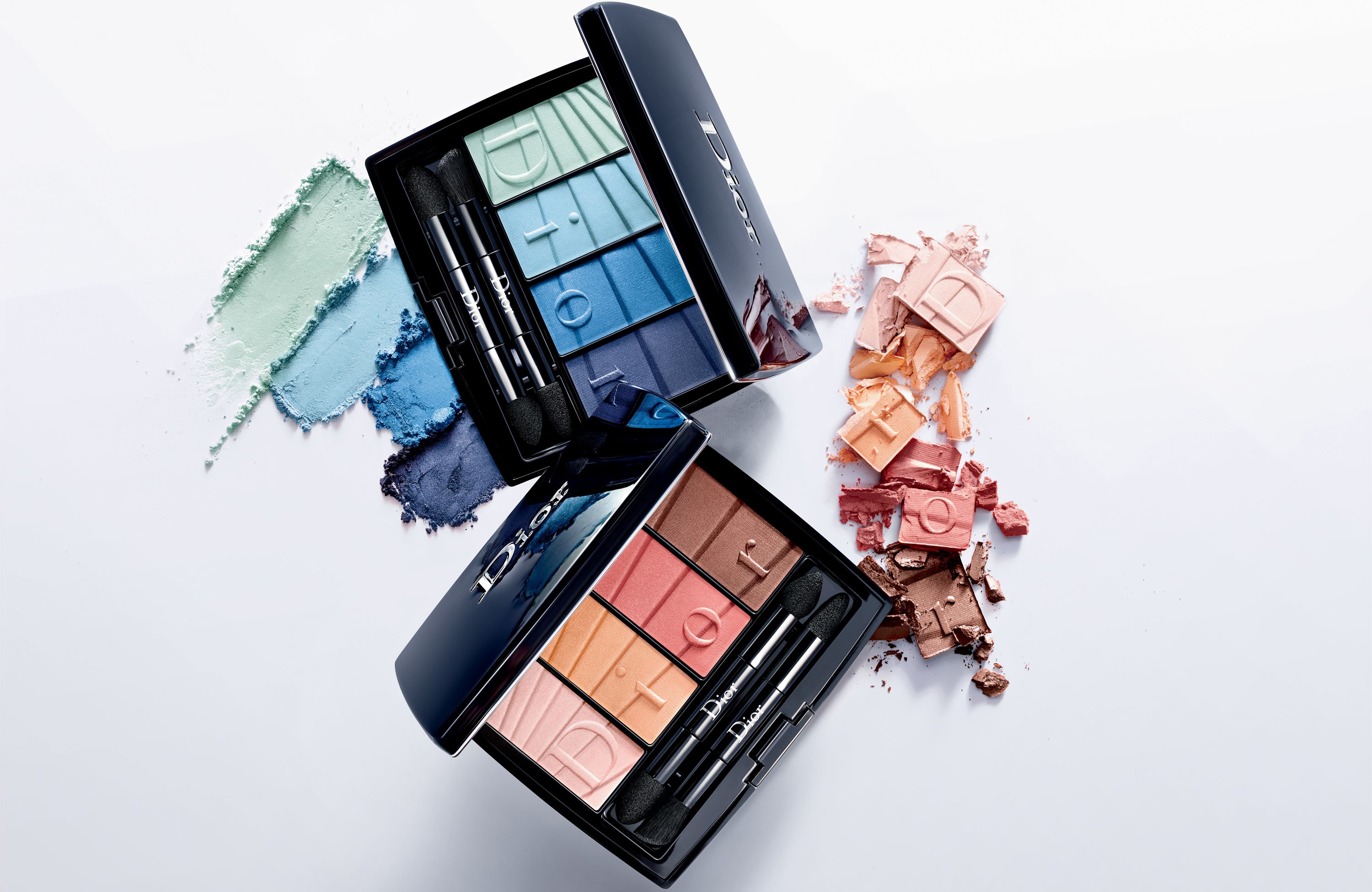 Dior создает абсолютно новую палитру для макияжа глаз, построенную на четырех весенних цветовых вариациях, украшенных легендарным плиссированным узором от Dior. Роскошные текстуры покрывают веки тончайшей вуалью, позволяя цвету «дышать». Палитра доступна в двух гармониях: первая гармония основана на свежем голубом оттенке, вторая – на розовом. — Blue Gradation: 4 оттенка голубого — от лазурного до цвета небесной синевы — Coral Gradation: 4 оттенка розового – от легкого кораллового до насыщенного оттенка бронзы