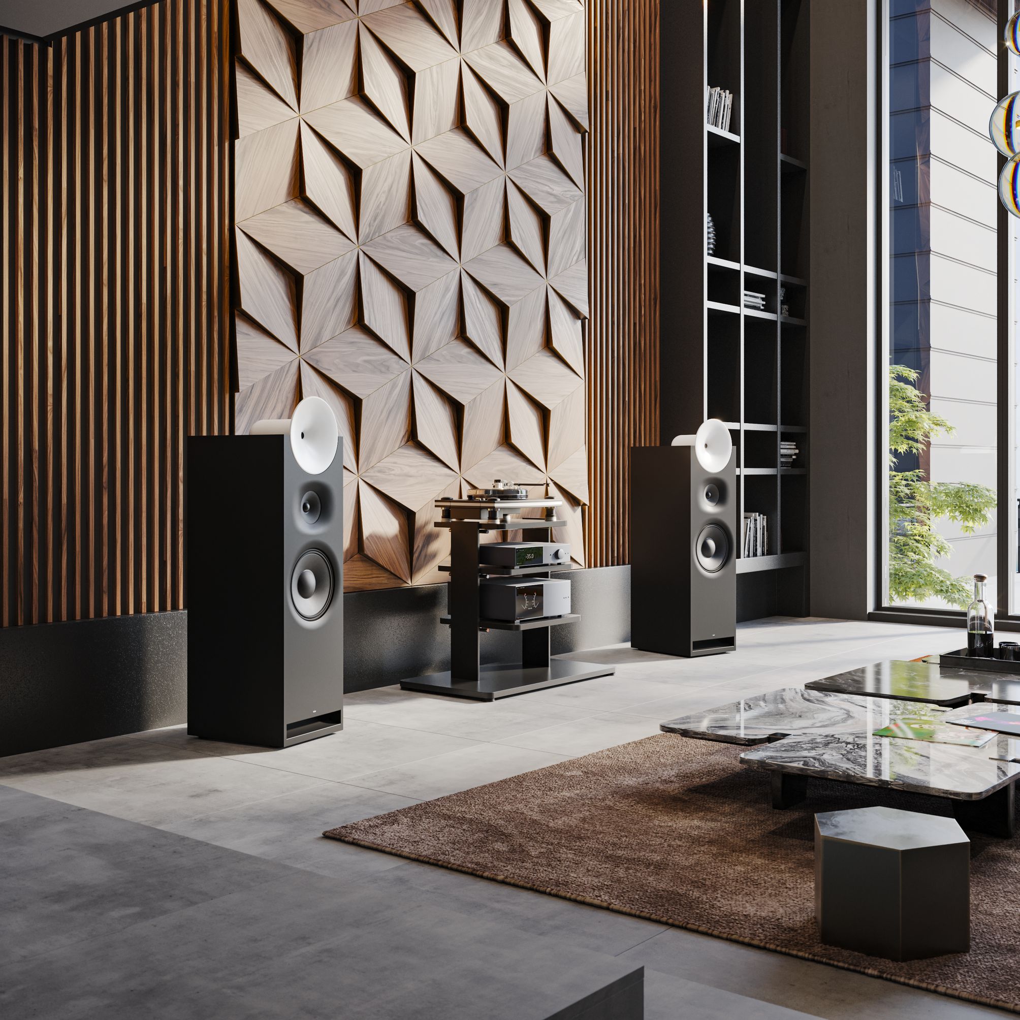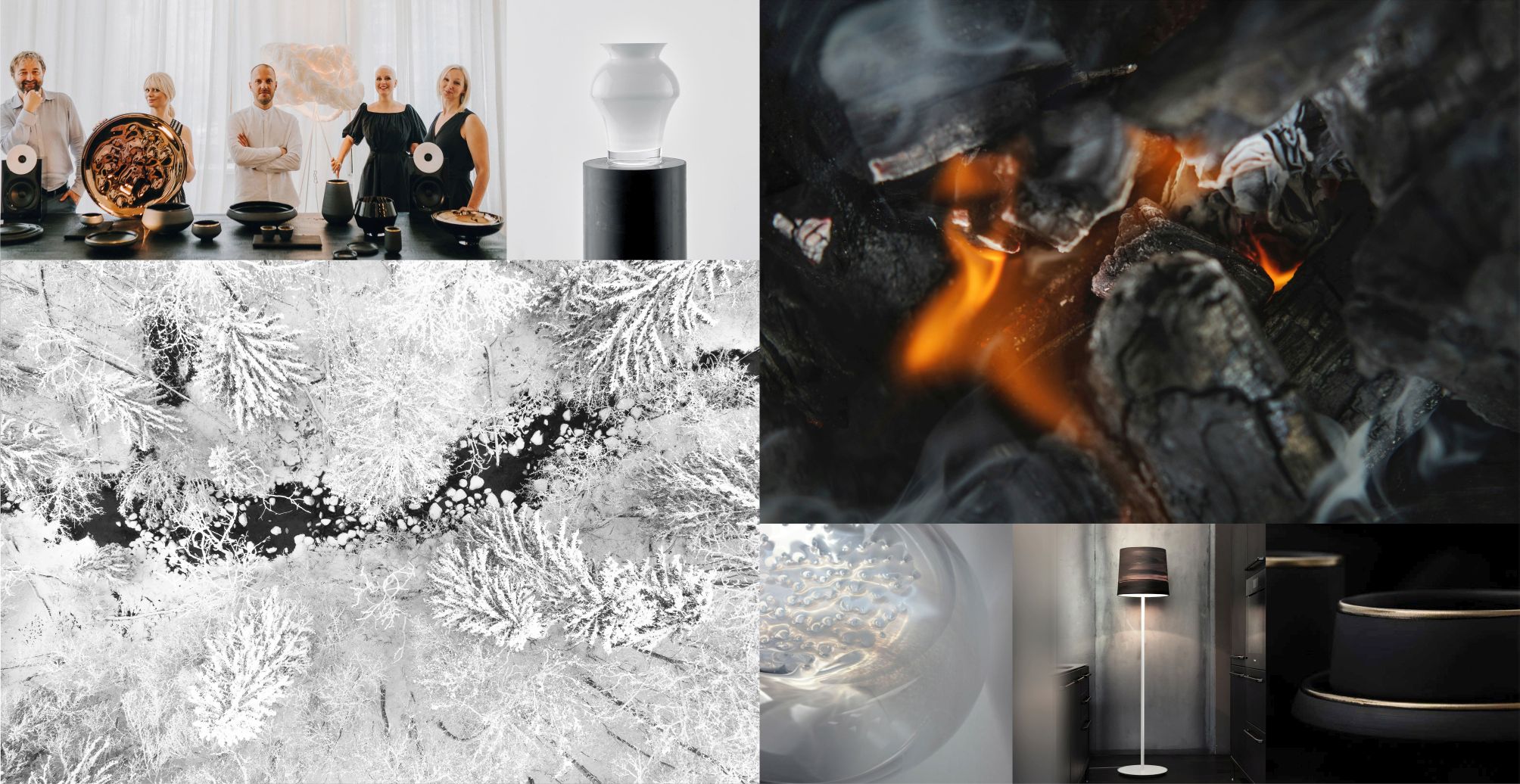 Центральным объектом станет чёрный стол из угольного дерева от «Mint», который создаёт точку притяжения для окружающих экспонатов. Белизна, холодный блеск и чёрно-белые контрасты подчёркивают гармонию материалов, чистоту линий и атмосферу латвийской зимы. «Простота, чистота и ясность — это лейтмотив нашей зимней экспозиции. Мы используем цвет, текстуру и игру форм, чтобы передать суть этого времени года», — отмечает куратор выставки Иева Калейя.