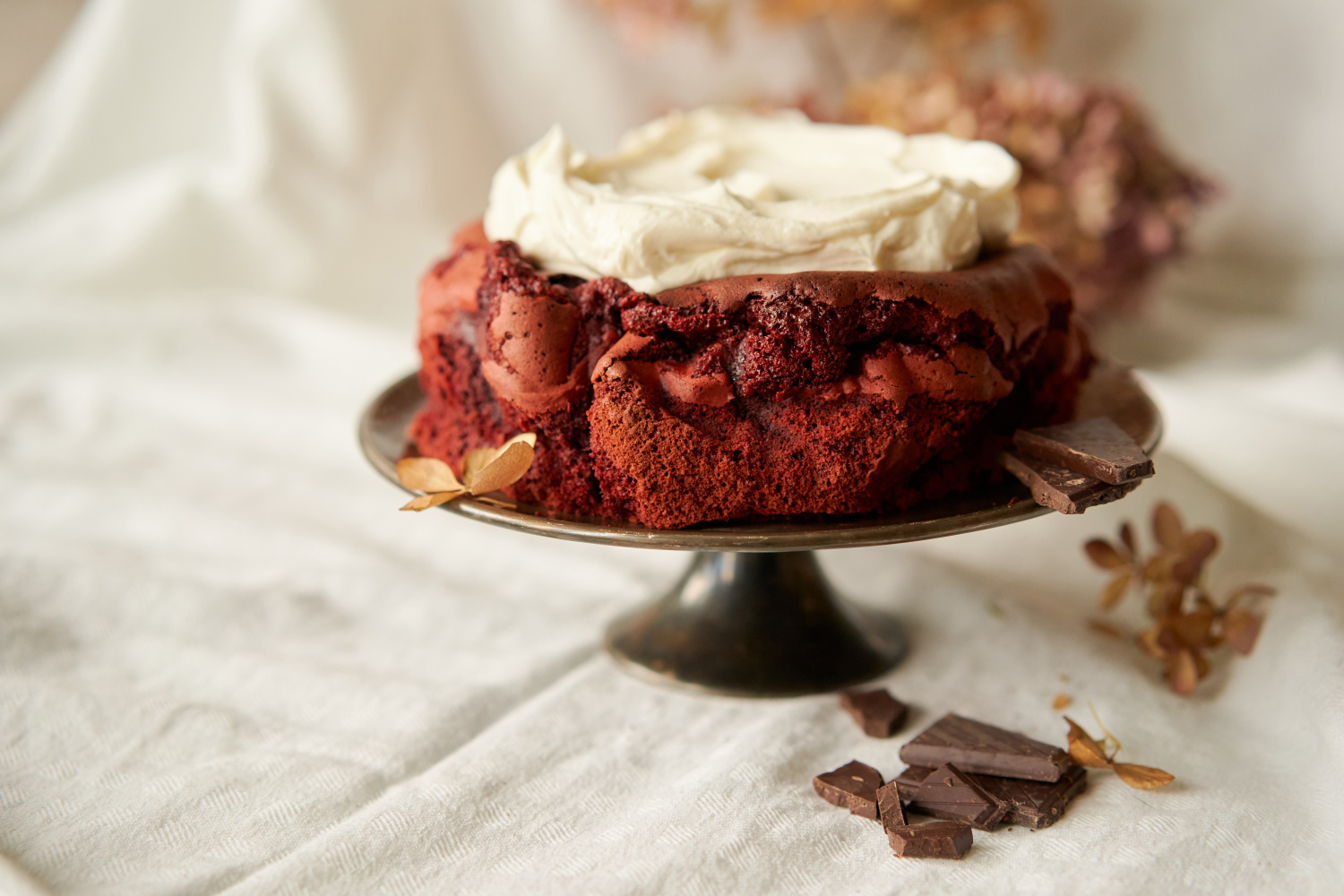 Шоколадный торт «Красный бархат» с греческим йогуртом (без муки)