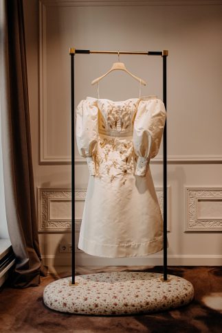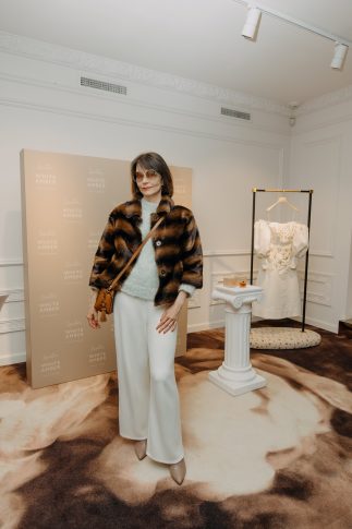 Специально для презентации парфюма White Amber Юлия Малахова создала уникальное шелковое платье, выполненное в единственном экземпляре. Платье украшено кристаллами Сваровски и особой вышивкой, олицетворяющей главную цветочную ноту аромата — ландыш. Над созданием наряда работали несколько мастеров, вышивка – дело рук талантливой швеи MCouture, выпускницы одной из самых старых и престижных вышивальных школ Франции LESAGE, проживающей в Латвии.