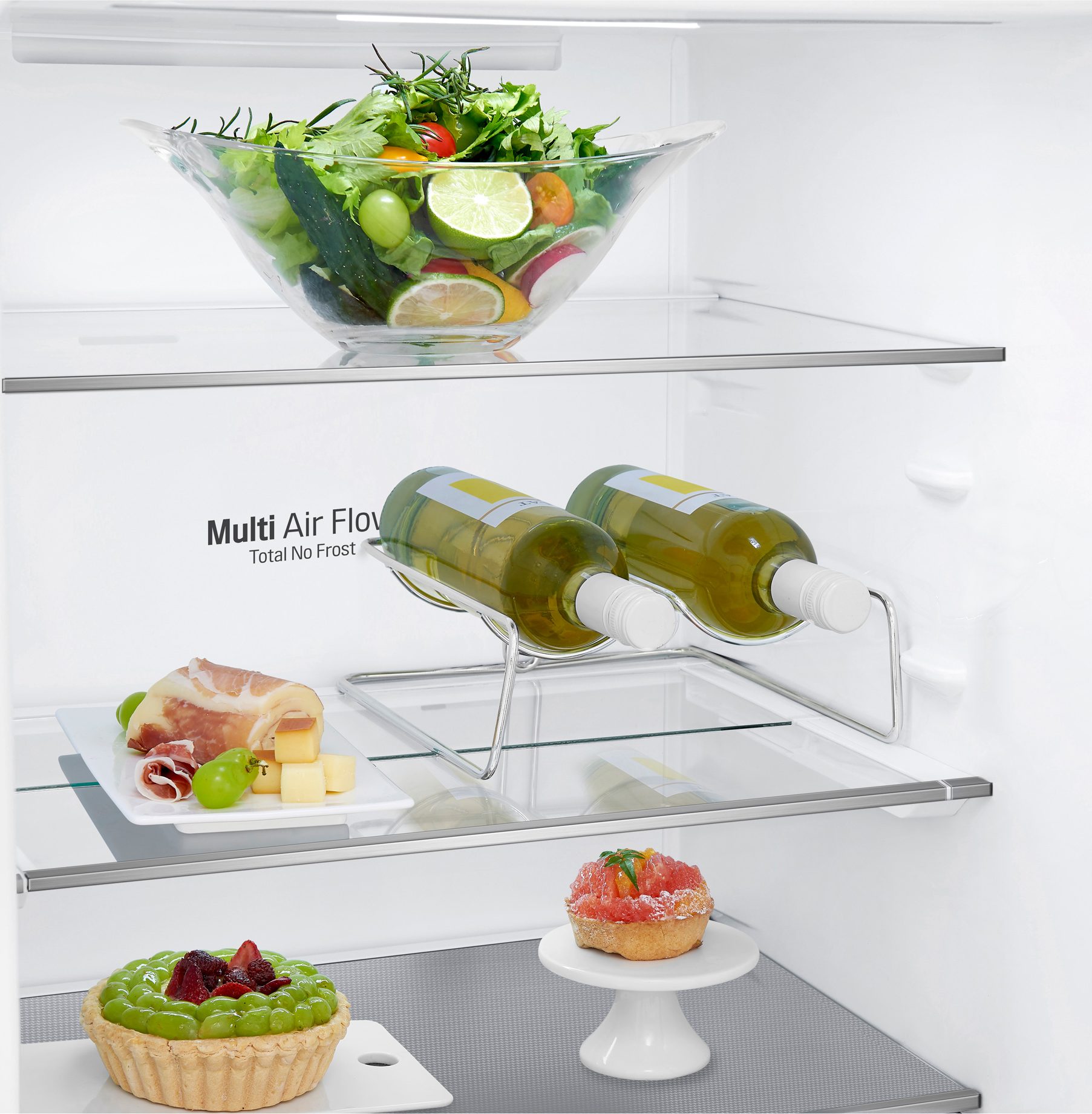 Прежде чем купить продукты, важно помнить, что чем полнее загружен холодильник, тем больше вероятность того, что продукты будут прижиматься к задней стенке холодильника, таким образом перекрывая вентиляционные отверстия и сенсоры. Одновременно при переполненном холодильнике невозможно обеспечить хотя бы небольшую дистанцию между продуктами, из-за чего будет нарушена правильная циркуляция воздуха между ними, таким образом продукты могут быстрее испортиться. К примеру, холодильники с встроенной технологией DoorCooling обеспечивают более быстрое и равномерное охлаждение, что позволяет поддерживать в холодильнике равномерную температуру, обеспечивая более длительную свежесть продуктов.