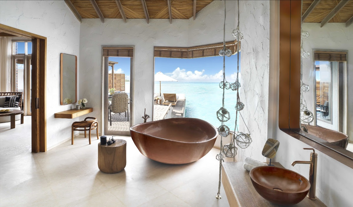 Интерьеры всех вилл выполнены исключительно из натуральных материалов в расслабленном стиле рустик и бохо-шик. Сводчатые деревянные крыши и обилие традиционных мальдивских орнаментов в дизайне — так создается максимально расслабленная атмосфера.