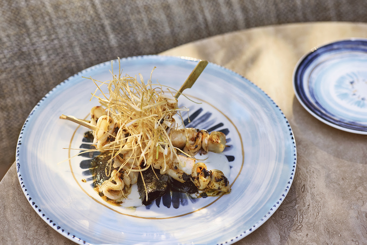 В меню поп-ап ресторана братьев Алаймо гостям предложат севиче из сибаса с гуакамоле и сорбетом из манго, карпаччо из креветок с кунжутом и морскими водорослями, холодную соевую лапшу с икрой и черными лисичками, а также татаки из говядины с кунжутом и васаби и палтуса, приготовленного на гриле, с острым соусом, нутом и цуккини.
