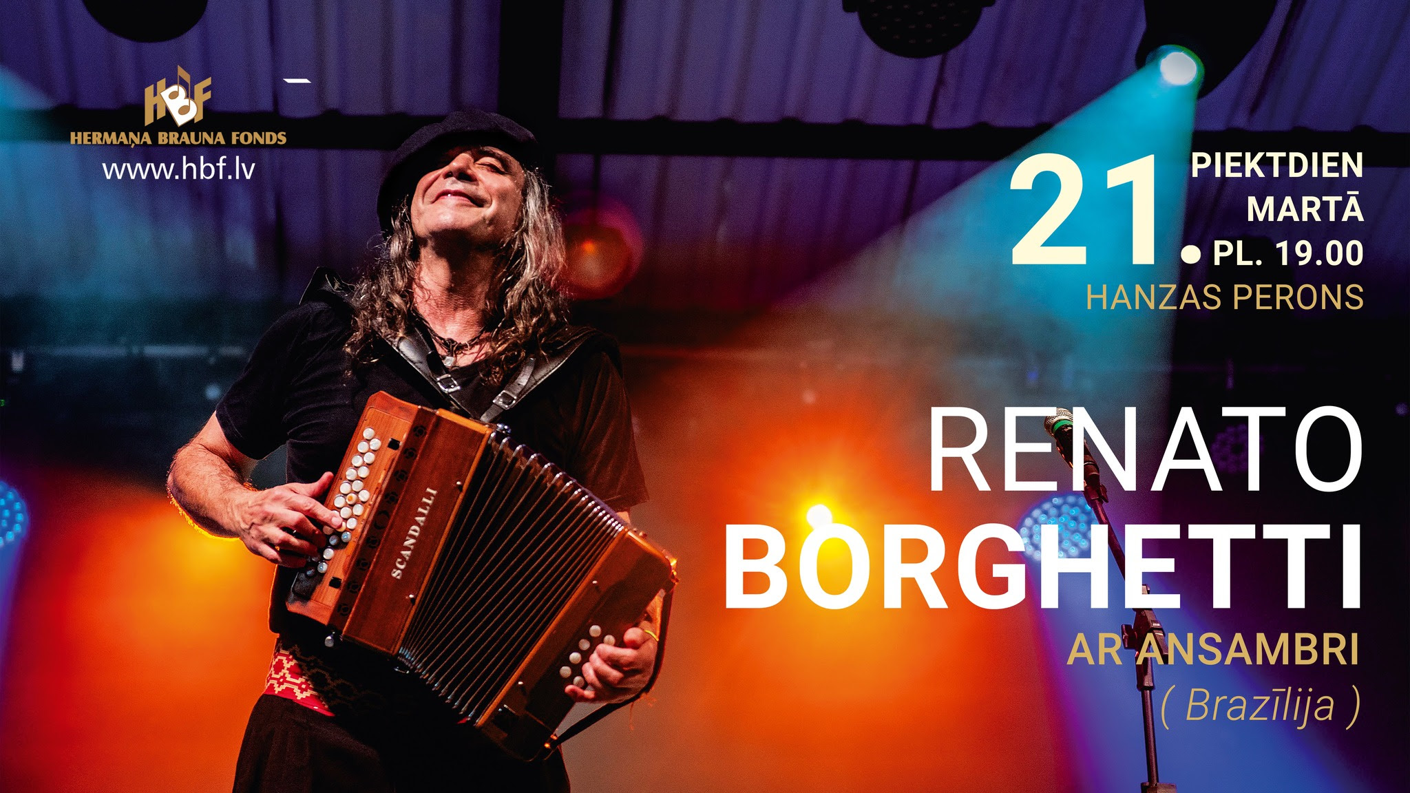 Бразильский аккордеонист, мастер богатых музыкальных традиций музыки гаучо Южной Бразилии, Ренато Боргетти предлагает вам незабываемое событие – латино-американскую музыку с элементами джаза, танго, глобальной поп-музыки, польки, мюзетт, африканских синкоп и итальянско-испанских влияний.