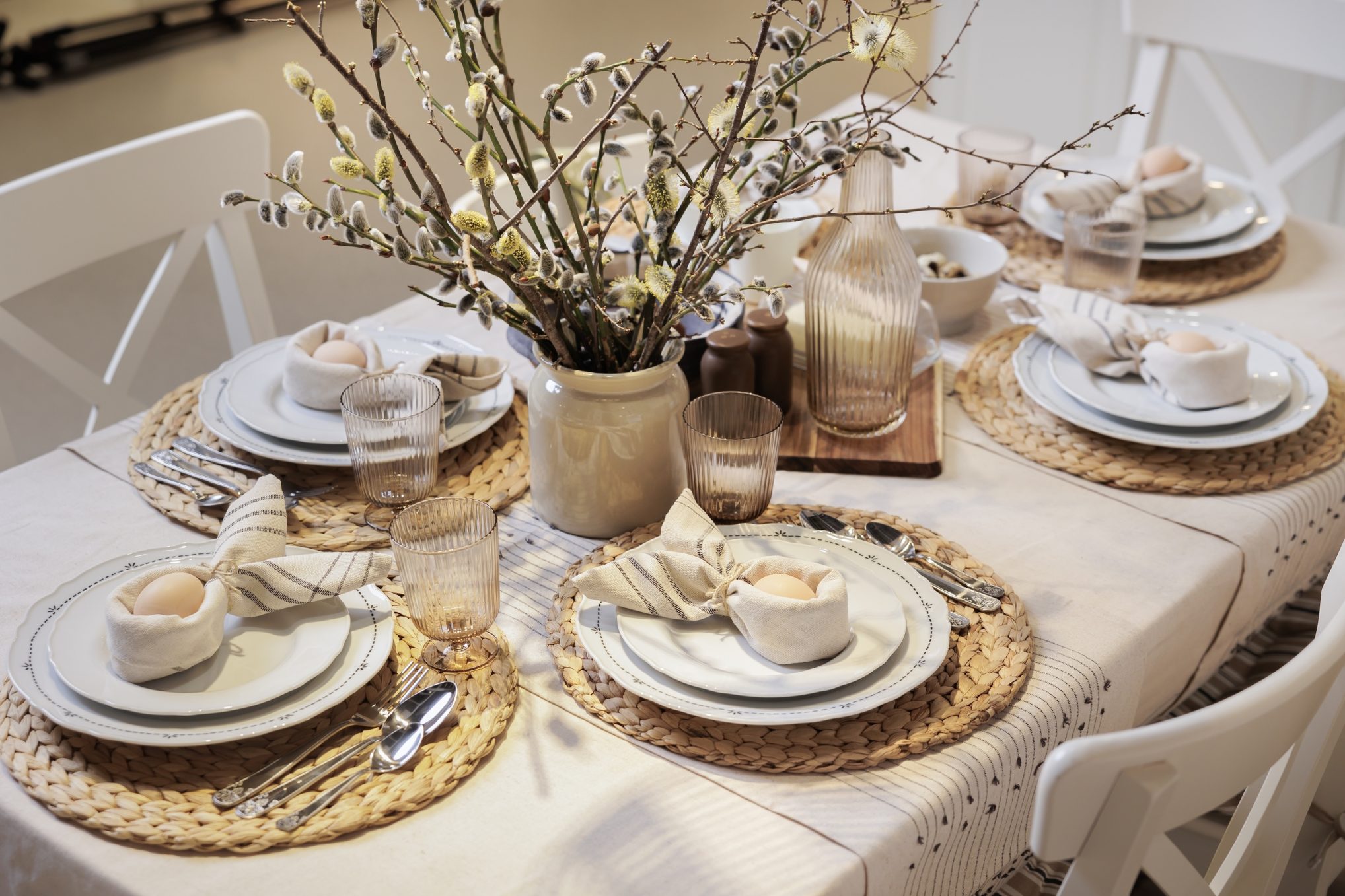 Руководитель отдела дизайна интерьеров IKEA Дариус Римкус советует сделать центральное украшение главным элементом пасхального стола, дополнив его природными и праздничными деталями. «Украсьте середину стола, разместив ряд стеклянных клошей или разноцветных пиал разного размера. Выбранную посуду можно наполнить мхом, или искусственными цветами, уже окрашенными яйцами или даже угощениями, например, шоколадными яйцами или фигурками зайцев. Вместо стеклянных клошей и пиал можно использовать желтую вазу, которая объединит цветовую гамму. Чтобы добавить композиции объема, по краям стола можно разместить горшки с нарциссами или графины с водой, создавая игру высоты и пространства».