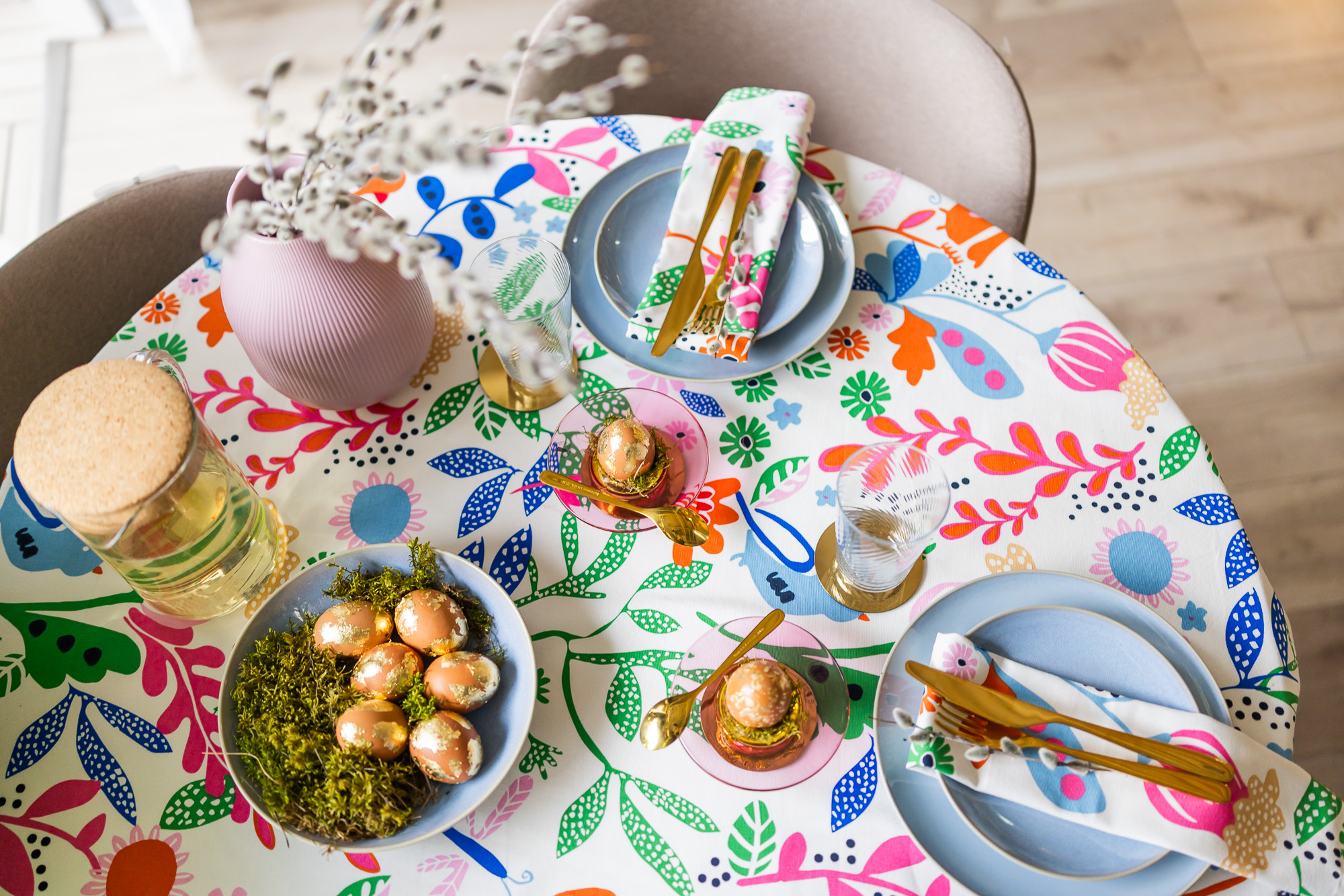 Если оформление интерьера — не ваша сильная сторона, дизайнеры советуют упростить задачу: выбрать яркую скатерть с узором. Дополните её подходящими многоразовыми салфетками и имеющейся посудой — и ваш праздничный стол произведет впечатление на гостей.