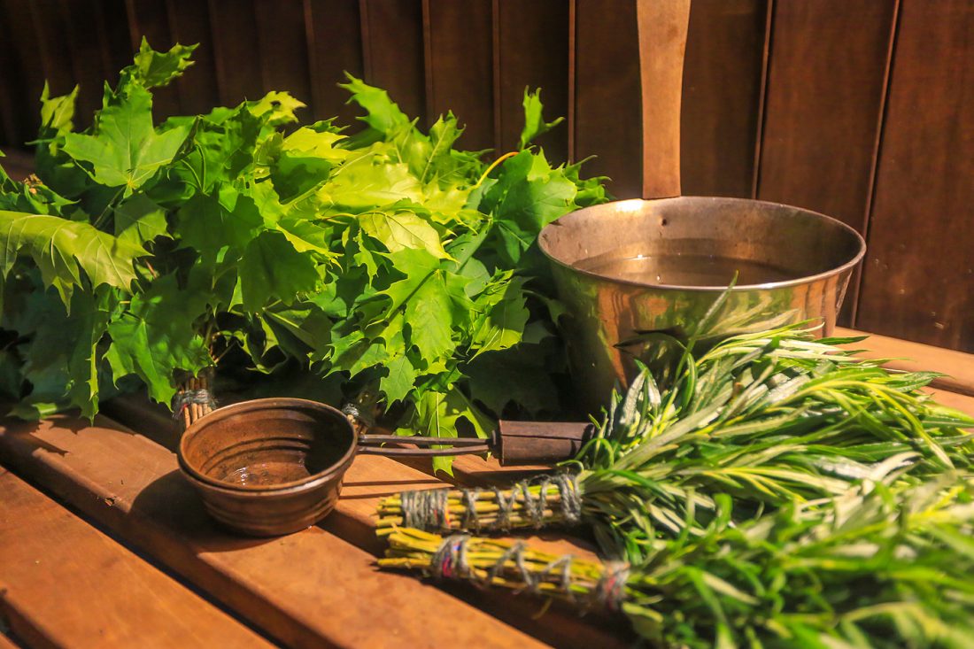 86С° считается идеальной температурой для латышской бани. Банный ритуал включает в себя и битье вениками, сделанными из ветвей разных деревьев – березы, дуба или клена. Легкие движения веником представляют собой одновременно и массаж, и ароматерапию. Под голову гостей кладут ветви липы с мятой, лавандой или другими лекарственными растениями. После бани важно охладиться. Контраст жара и холода благотворно влияет на сосуды, закаляет организм и делает кожу эластичной.
