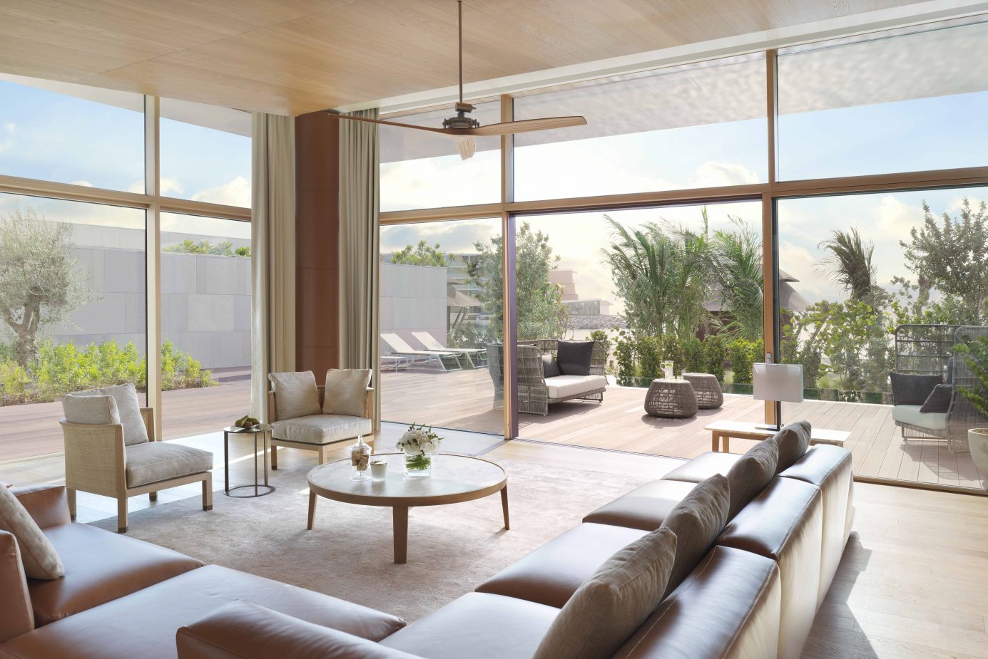Курорт располагает 101 номером и сьютом и 20 виллами с эксклюзивной итальянской мебелью безупречного качества таких известных брендов как Maxalto, Flos, Fesform. Из панорамных окон всех номеров и сьютов открывается захватывающий дух вид на Дубай и Персидский залив, а просторные балконы позволяют гостям в полной мере наслаждаться этим великолепным пейзажем.