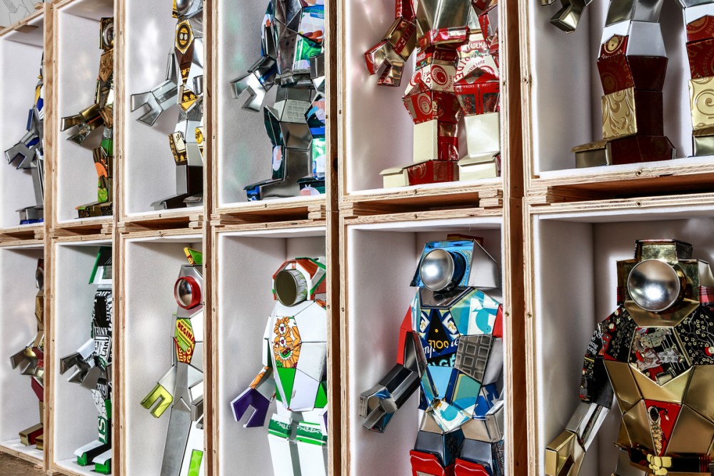 Специально для MB&F M.A.D.Gallery Штадельман создал целый отряд из 16 пронумерованных роботов, каждый из которых не похож на остальных и обладает легко распознаваемыми индивидуальными особенностями. Их многочисленные складки и изгибы, напоминающие оригами, свидетельствуют о большом опыте автора в работе с металлом и о его таланте дизайнера. О происхождении элементов конструкции каждого Robotyp несложно догадаться – тут и хорошо знакомые жестяные банки из-под Persi, и коробки из-под экзотического азиатского чая, и многое другое.