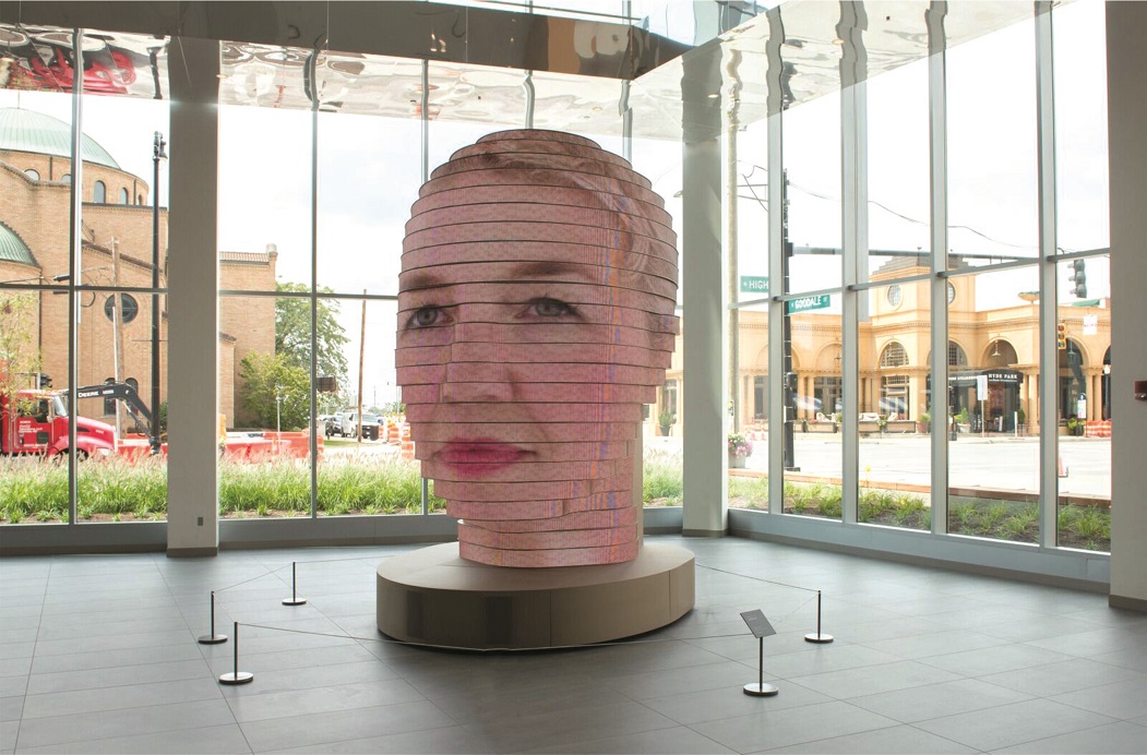 Интересное решение, которое в перспективе может найти свою нишу в ретейле и рекламе, недавно продемонстрировал дизайнер Мэттью Мор (matthewmohr.com). В выставочном зале города Колумбус (США) Columbus Convention Center (boisecentre.com) он установил селфи-будку в виде гигантской четырехметровой головы, поверхность которой состоит из множества светодиодов. Посетитель фотографируется — его снимают 29 камер с различных ракурсов, и, выйдя, он видит свой огромный 3D-портрет. А если это решение интегрировать с системами распознавания лиц, дистанционно сканирующими человека во всех ракурсах, выглядеть будет очень эффектно.
