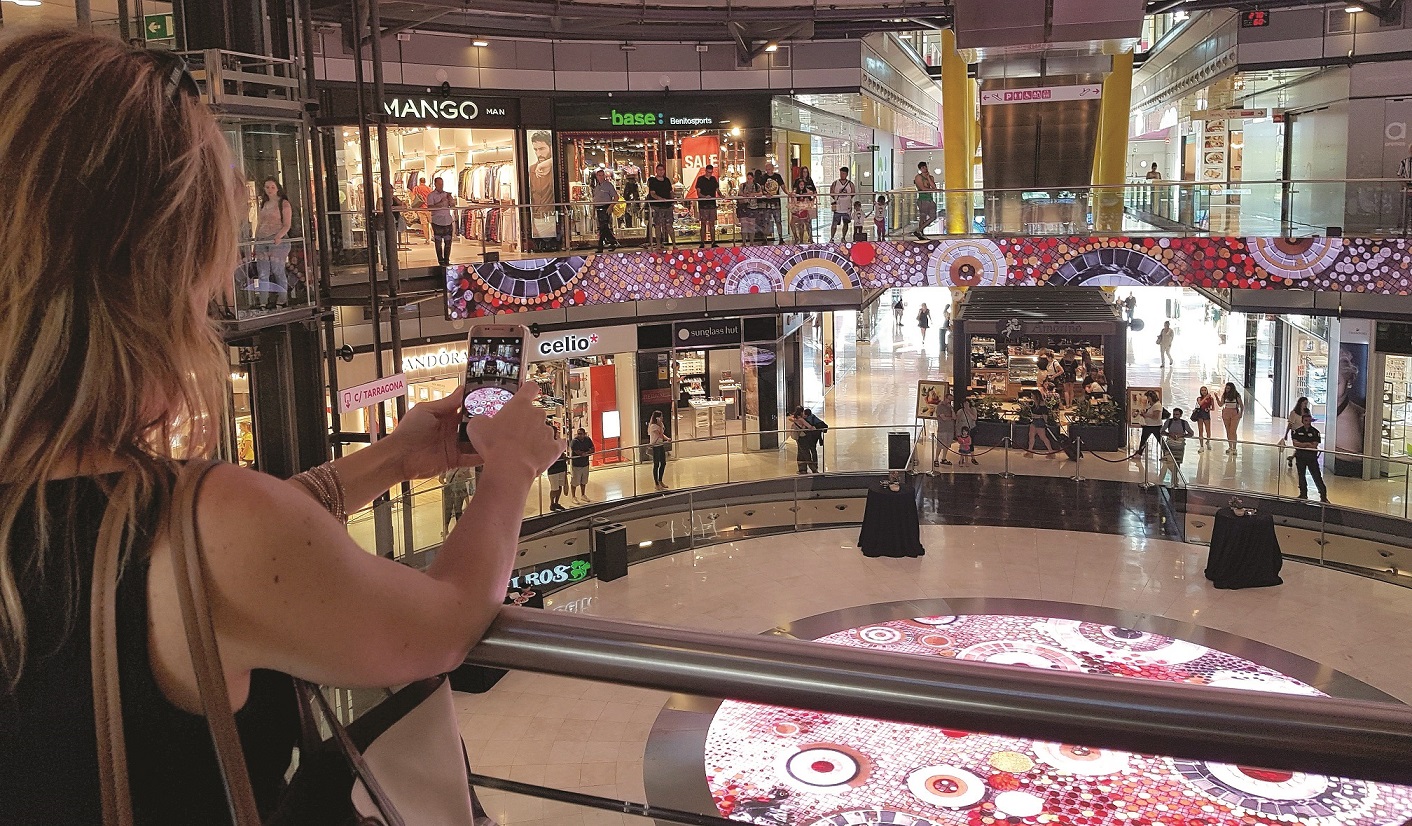И спецэффекты начинаются уже с порога: фасады облицовывают диодной сеткой. Такой медиафасад служит огромным экраном — на него транслируют рекламу, видеоконтент, красочные инсталляции. К любому празднику и событию дизайнеры создают оригинальную композицию, которую видно издалека. Фасад живет, играет всеми цветами радуги, особенно в сумеречные часы, привлекает внимание всех проезжающих и проходящих мимо. Похожие визуальные решения используются внутри здания — на потолке, стенах, балконах, панелях эскалаторов и т. д. и т. п.: у гостей сразу возникает особое, праздничное настроение.