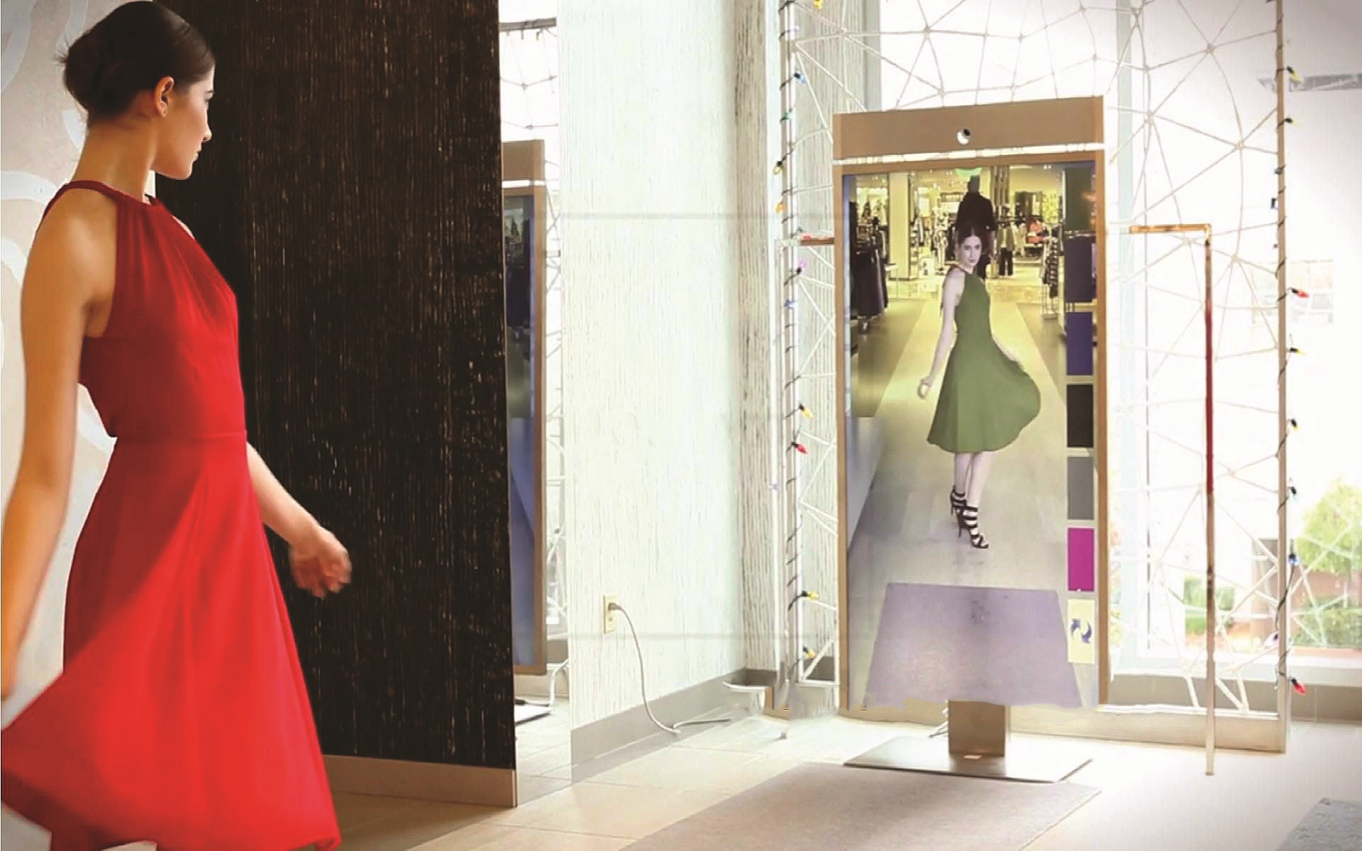 Еще одна удобная фишка современного шопинга — виртуальные примерочные. Процесс подбора гардероба нелегкий, особенно в зимнее время: снять сапоги и узкие джинсы не так-то просто и быстро. Высокие технологии позволяют решить эту проблему. Покупателю больше не надо прятаться за шторкой и переодеваться: он стоит перед интерактивным зеркалом, легкое движение руки — и на нем новый наряд. Можно любоваться во всех ракурсах, менять цвет, подбирать аксессуары, сделать селфи — и тут же выставить в соцсети, дабы услышать мнение общественности.