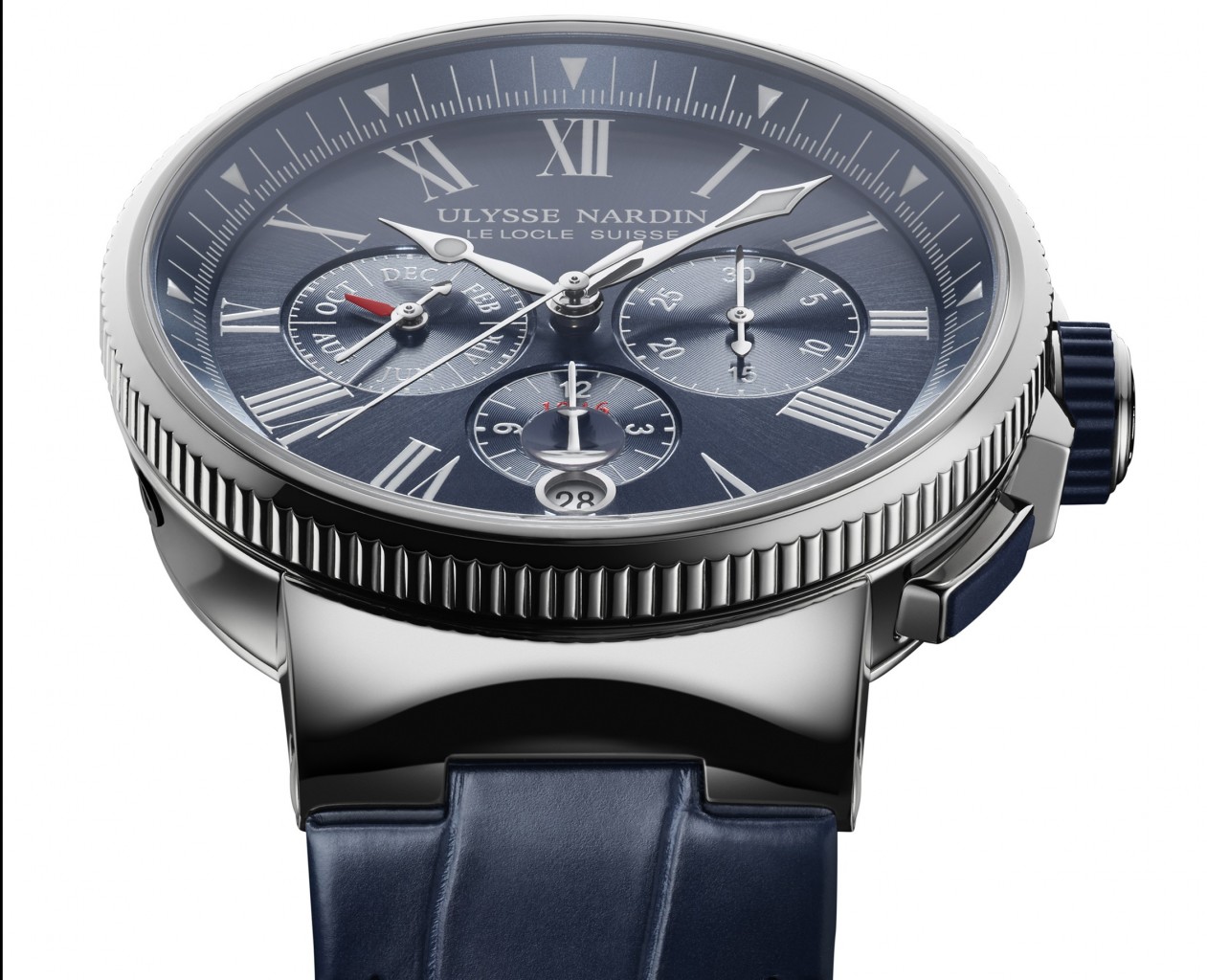 Новая модель мануфактуры Marine Chronograph Annual Calendar полностью соответствует этому утверждению. Внешне простая и лаконичная, вся сложность работы механизма скрыта от пристального взгляда ее обладателя. Годовой календарь, показатели которого регулируется в двух направлениях: вперед-назад, механизм, выполненный с применением кремниевых технологий, максимальная точность хода, полностью мануфактурный калибр UN-153.