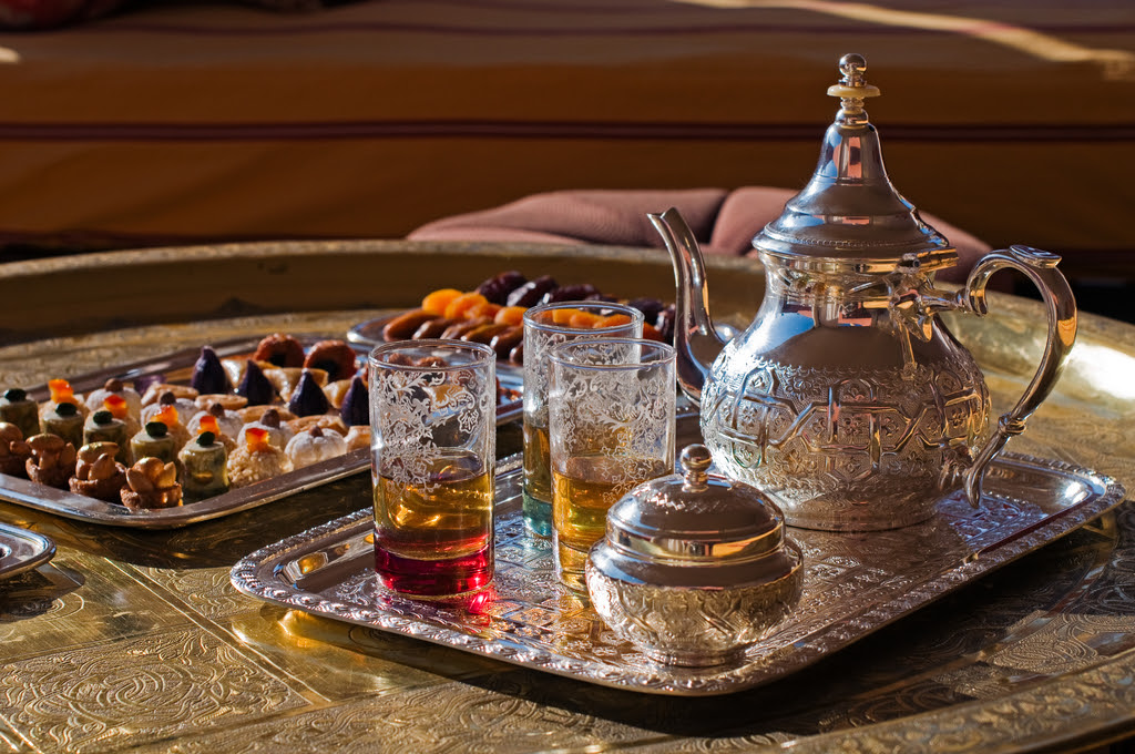 Знаменитый марокканский мятный чай – настоящий символ гостеприимства и магрибской культуры, непременный атрибут семейного и дружественного застолья, а его приготовление – обряд, передающийся из поколения в поколение! Кстати интересен тот факт, что историки не сходятся во мнении по поводу даты появления традиционного чая в Марокко. Некоторые исторические документы свидетельствуют о том, что во время правления султана Мулая Исмаила чай предлагали в качестве «дипломатического» подарка и угощения во время официальных визитов, особенно гостям-англичанам. В то время чай был редким и дорогим. По другой версии, чай в Марокко завез британский торговец во времена Крымской войны в 1854 году. С тех пор Марокко является одним из крупнейших в мире импортеров чая.
